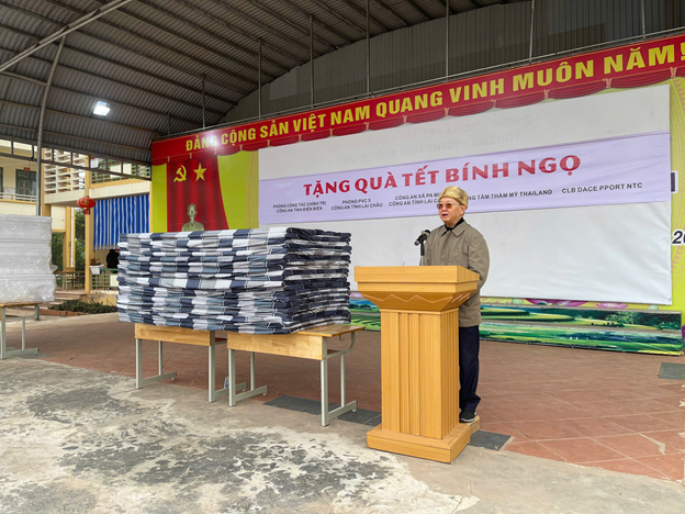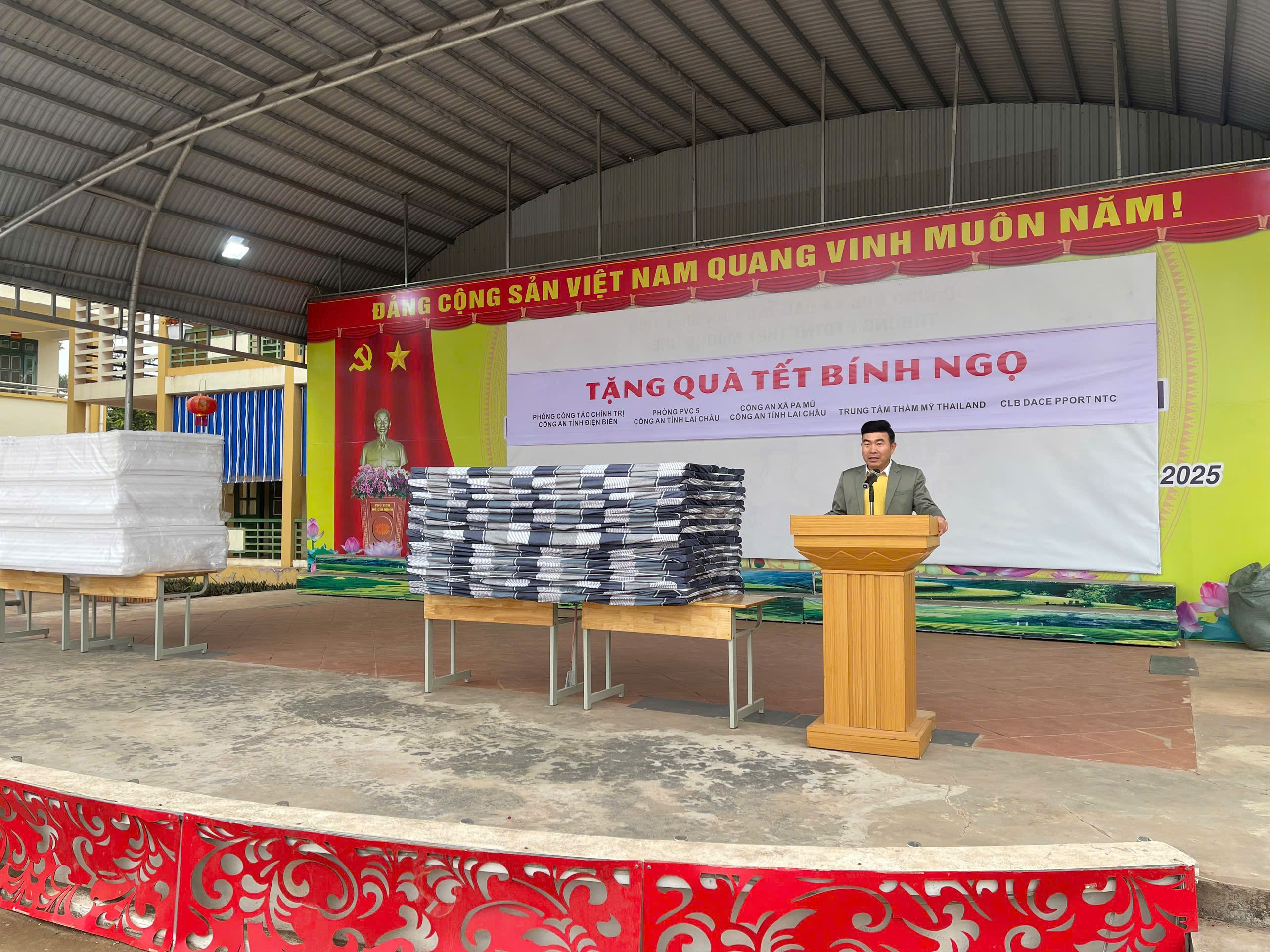 Thay mặt nhà trường thầy giáo Phạm Văn Hạ, Bí thư chi bộ, Hiệu trưởng nhà trường phát biểu cảm ơn đoàn Từ thiện đã dành những tình cảm, sự hỗ trợ quý báu cho học sinh Mường Nhé. Kính chúc đoàn công tác sức khỏe, thành công và tiếp tục lan tỏa yêu thương đến nhiều miền quê khó khăn trên Tổ quốc.