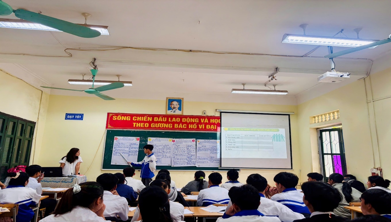 HS hào hứng trong tiết sinh học do cô giáo Nguyễn Thu Hằng giảng dạy cùng với sự trợ giúp đắc lực của AI.