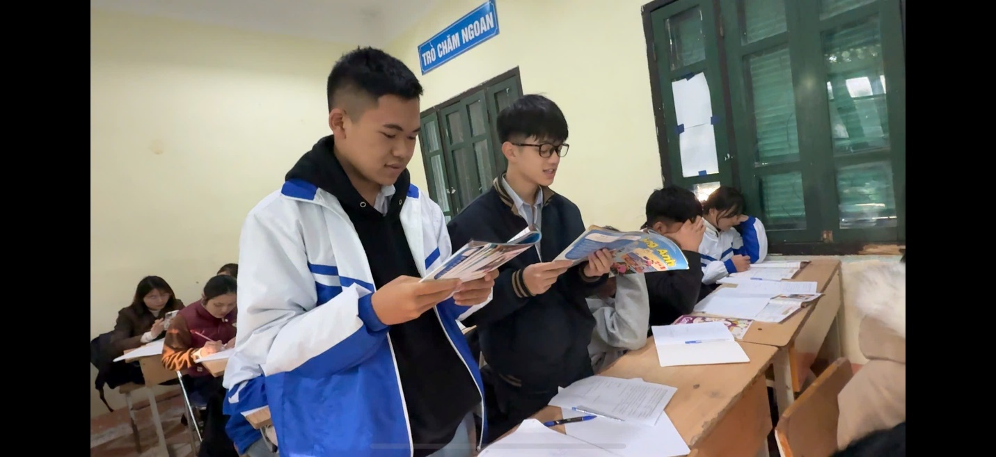 Học sinh thực hiện nhiệm vụ đóng vai trong tiết Tiếng Anh của cô giáo Võ Thị Hoá.