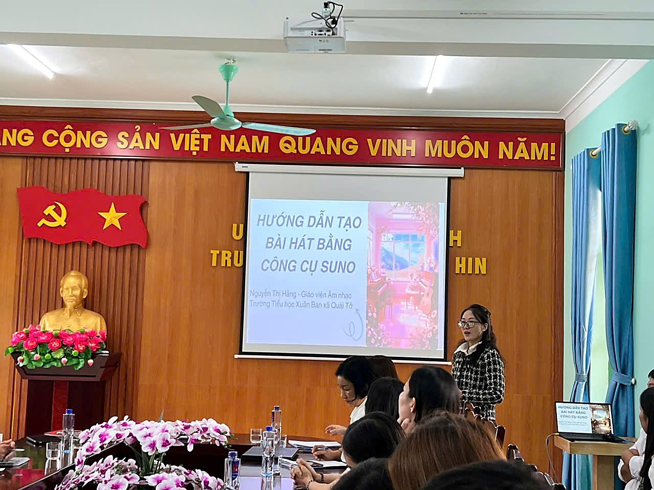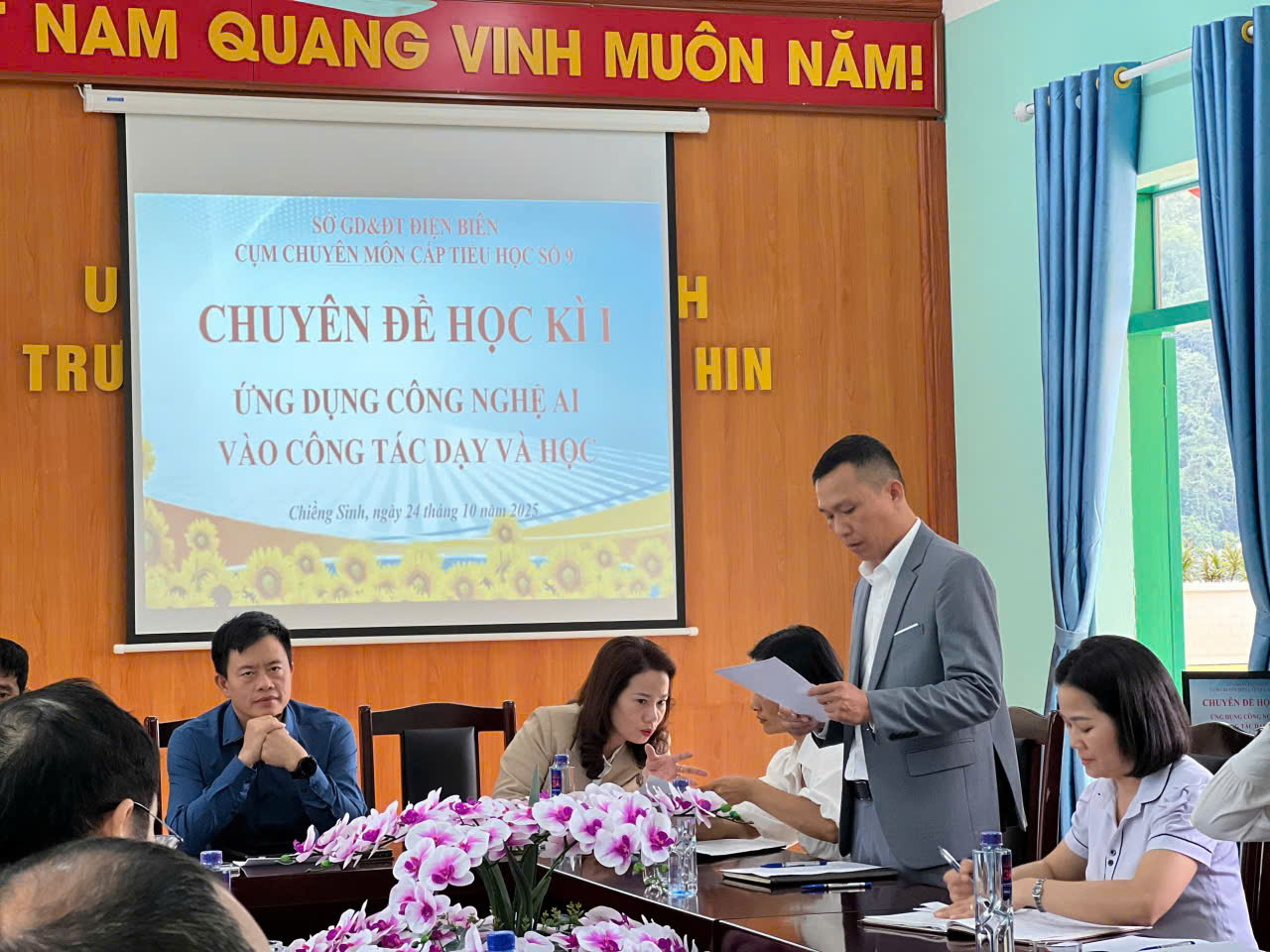 Phát biểu chỉ đạo tại buổi sinh hoạt, đồng chí Phan Bá Hiền – Chuyên viên Phòng GD Mầm non - Tiểu học, Sở GD&ĐT tỉnh Điện Biên – ghi nhận và biểu dương tinh thần học hỏi, sáng tạo, tích cực chia sẻ kinh nghiệm của các trường trong cụm. Đồng chí nhấn mạnh: “Sinh hoạt chuyên môn là dịp để cán bộ, giáo viên tháo gỡ khó khăn, cùng nhau chia sẻ kinh nghiệm, tìm ra những cách làm hay, sáng tạo nhằm nâng cao chất lượng dạy học và hiệu quả giáo dục học sinh. Việc đưa AI vào dạy học là hướng đi tất yếu, góp phần hiện thực hóa chuyển đổi số trong ngành giáo dục.”