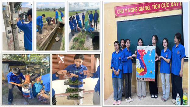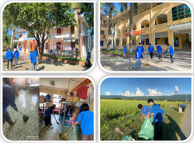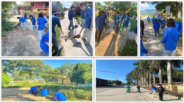 Không dừng lại ở đó, nhiều nhóm đoàn viên đã tỏa về các thôn bản, phối hợp cùng thanh niên địa phương dọn vệ sinh đường làng, xóa điểm đen ô nhiễm, bóc xóa quảng cáo rao vặt trái phép, thu gom rác thải và khơi thông hệ thống thoát nước. Nhờ sự phối hợp chặt chẽ giữa Đoàn trường và chính quyền địa phương, toàn bộ hoạt động diễn ra nhịp nhàng, an toàn và hiệu quả.