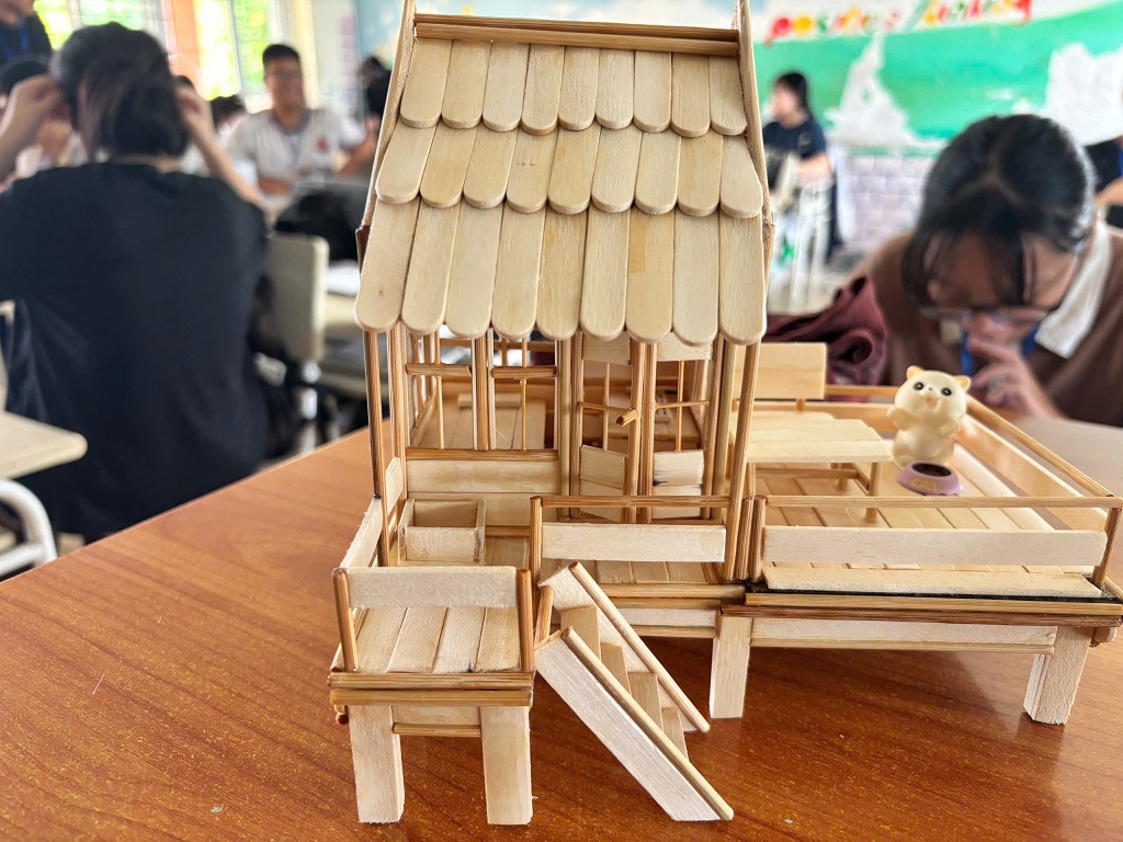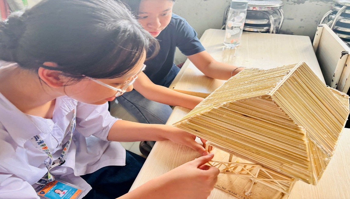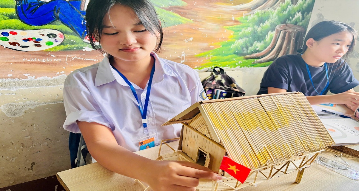 Học sinh thực hành làm mô hình với chủ đề “Kiến trúc nhà ở truyền thống một số dân tộc ở Điện Biên”