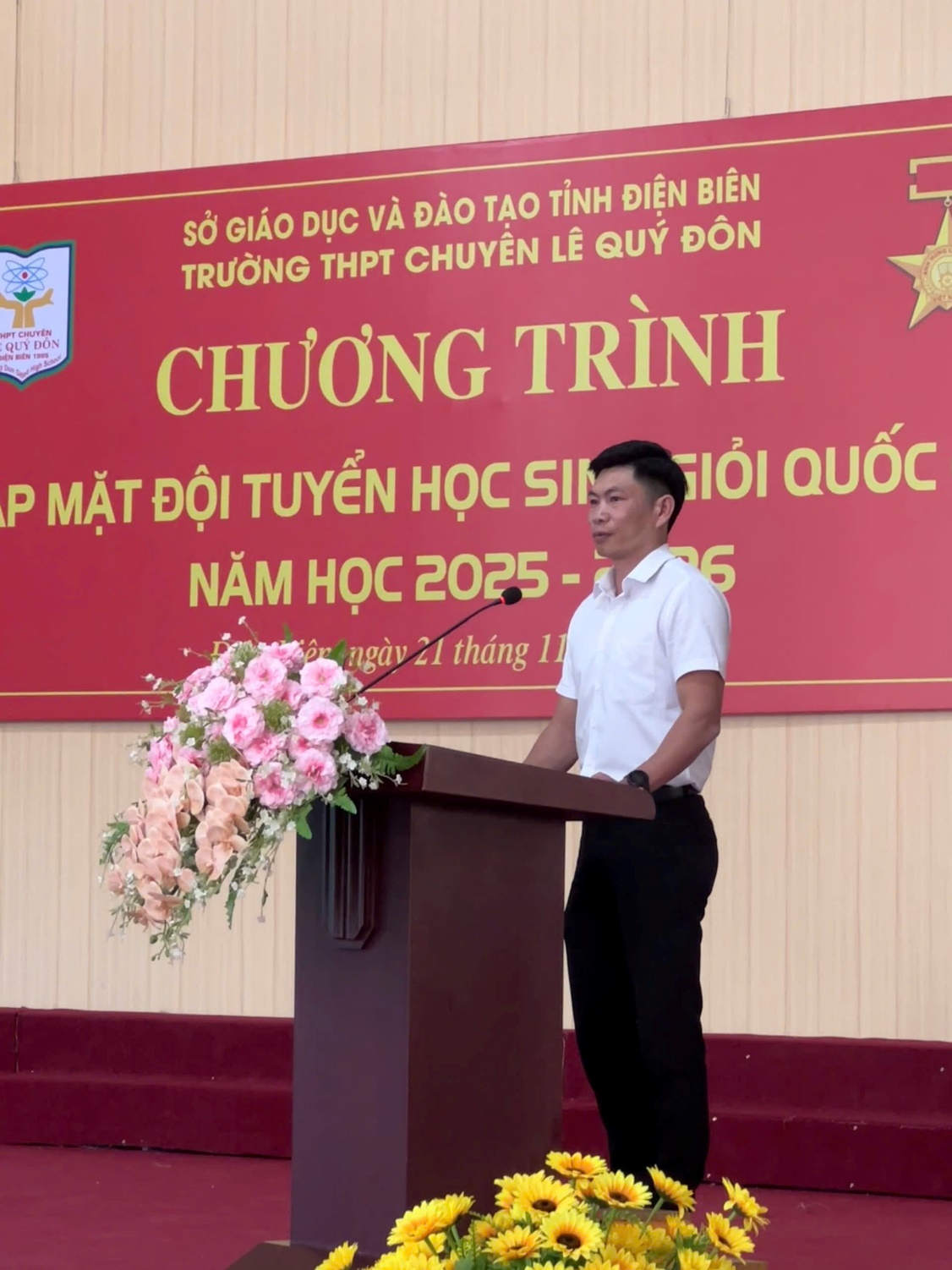 Em Nguyễn Quyết Tiến - học sinh đã từng đạt giải Nhì HSG QG vượt cấp môn Địa lý năm 2024 – 2025, tiếp tục là học sinh xuất sắc của đội tuyển HSG QG môn Địa lý năm học 2025 – 2026, em bày tỏ niềm tự hào, trách nhiệm và lòng biết ơn đối với thầy cô và bố mẹ. Với Quyết Tiến, quá trình ôn luyện như một “chuyến bay đặc biệt” dẫn tới tầng tri thức cao nhất, nơi các em thỏa mãn khát vọng học hỏi và đồng hành cùng bạn bè. Quyết Tiến khẳng định: “Dù đối diện áp lực học tập, xa gia đình hay những ngày nắng gắt, rét buốt, tình thương và sự đồng hành của thầy cô, bạn bè và gia đình luôn là động lực để tiếp tục phấn đấu. Thay mặt các bạn trong 10 đội tuyển, em hứa sẽ nỗ lực hết mình, trang bị kiến thức vững vàng, đạt kết quả cao trong kỳ thi và góp phần vun đắp thương hiệu trường chuyên Điện Biên”.