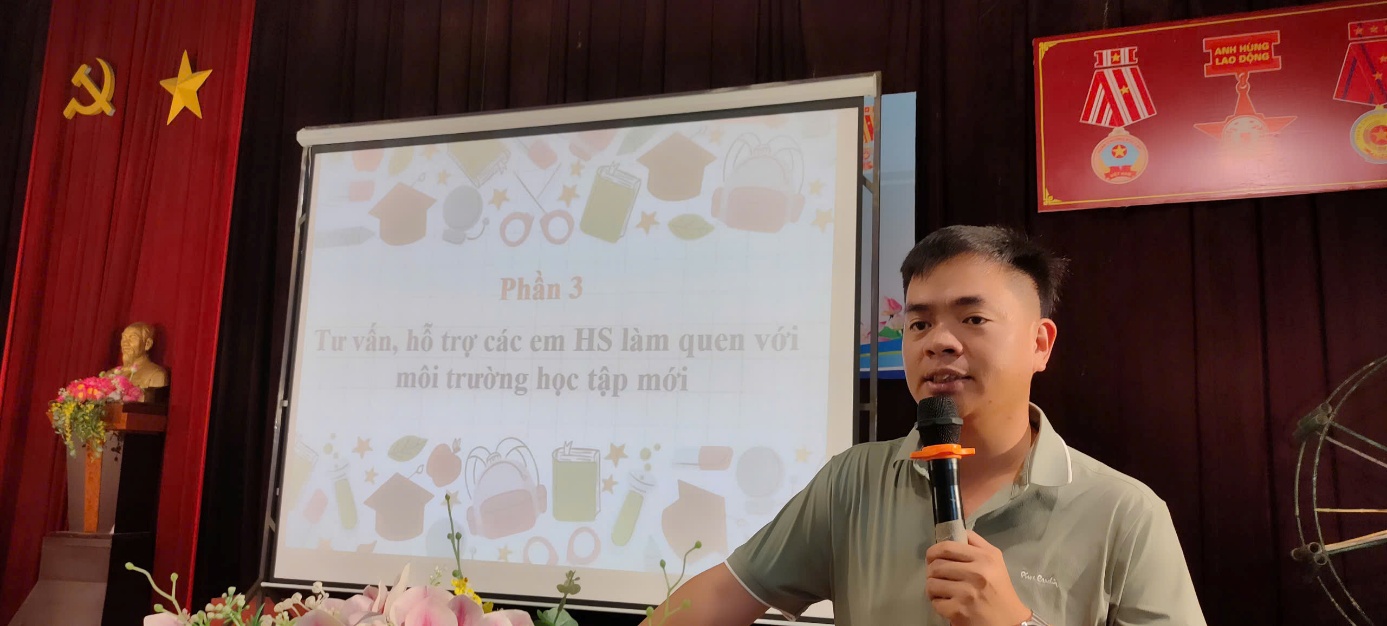 Các thầy, cô trong Tổ giáo viên chủ nhiệm, Tổ tư vấn tâm lý học đường cũng có những chia sẻ, hướng dẫn để giúp các em tự tin hơn khi sống xa nhà, trang bị các kỹ năng thiết yếu như: tự quản lý và xây dựng mối quan hệ, cách sắp xếp thời gian biểu, quản lý tài chính cá nhân, chăm sóc sức khỏe và kiểm soát cảm xúc. Ngoài ra, chương trình còn chia sẻ về cách thức giao tiếp hiệu quả, khuyến khích các em tích cực tham gia hoạt động tập thể để kết bạn và xây dựng tình đoàn kết. Đồng thời, các giáo viên cũng chia sẻ những phương pháp học tập hiệu quả ở cấp THPT.