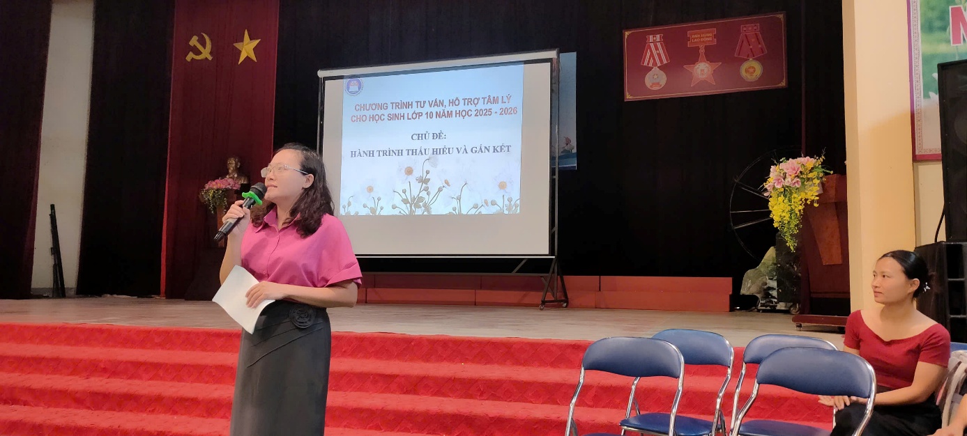 Cô giáo Phạm Thị Thanh Huyền – Phó hiệu trưởng nhà trường đã gửi lời chúc mừng đến 355 em học sinh lớp 10 đã xuất sắc vượt qua kì thi để trở thành những thành viên của ngôi trường nội trú tỉnh thân yêu. Bên cạnh đó thay mặt Ban giám hiệu cô giáo đã giới thiệu cho các em tổng quan về cơ cấu, bộ máy tổ chức nhà trường, tổng số đội ngũ cán bộ, giáo viên, học sinh trong năm học 2025 - 2026 đồng thời gửi lời chúc các em học sinh một năm mới đạt nhiều thành tích tốt trong học tập, rèn luyện để viết tiếp trang sử vàng của nhà trường chuẩn bị chào đón kỉ niệm 70 năm thành lập trường.