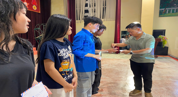 Thầy Võ Hồng Cầm – Bí thư đoàn trường trao giải cuộc thi ảnh đẹp của lớp 10 cùng khối Liên kết với chủ đề “Khoảnh khắc”