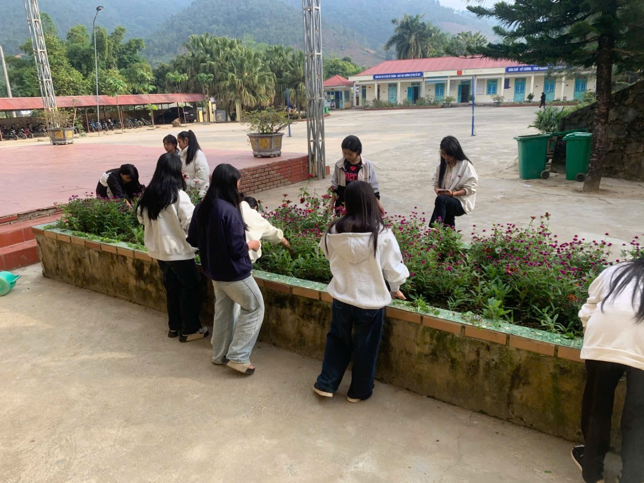 Dienbien.edu.vn-Mỗi buổi sáng, khi ánh nắng đầu ngày len qua những tán cây phượng vĩ, sân trường THCS&THPT Quài Tở lại rộn ràng tiếng cười của học trò. Giữa màu xanh mát của hàng cây, những luống hoa được vun xới cẩn thận, những hàng ghế đá sạch sẽ, gọn gàng – tất cả tạo nên một không gian học tập trong lành, thân thiện. Ít ai biết rằng, để có được cảnh quan ấy là cả một quá trình nỗ lực bền bỉ của thầy và trò nhà trường trong việc xây dựng “Trường học xanh – sạch – đẹp – an toàn”.