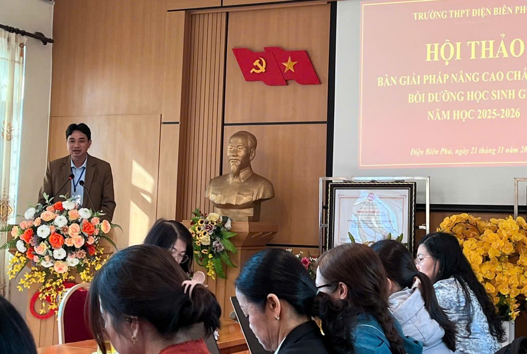 Dienbien.edu.vn - Thực hiện Kế hoạch số 469/KH-THPTĐBP ngày 16/9/2025 của Trường THPT Điện Biên Phủ về kế hoạch tổ chức bồi dưỡng các đội tuyển học sinh giỏi năm học 2025-2026, với mục tiêu không ngừng nâng cao chất lượng dạy và học, đặc biệt là công tác bồi dưỡng học sinh giỏi, ngày 21 tháng 11 năm 2025, trường THPT Điện Biên Phủ đã tổ chức Hội thảo chuyên môn “Nâng cao chất lượng bồi dưỡng học sinh giỏi” nhằm đề xuất các giải pháp nâng cao chất lượng công tác bồi dưỡng học sinh giỏi.