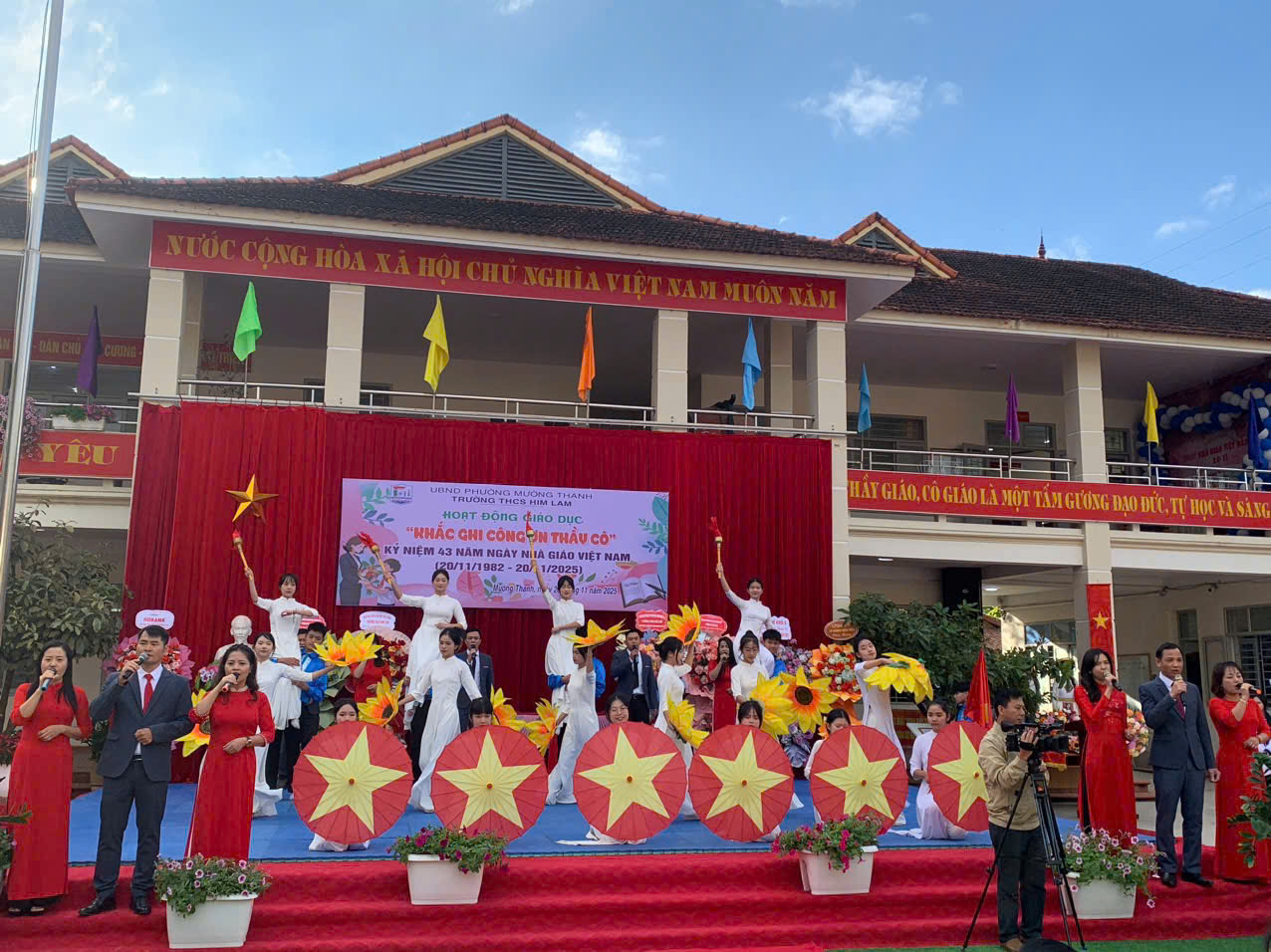Nhân dịp kỉ niệm 43 năm ngày nhà giáo Việt Nam 20/11, Liên đội trường THCS Him Lam tổ chức Hoạt động giáo dục tập thể với chủ đề “Khắc ghi công ơn thầy cô” đây là một hoạt động vô cùng ý nghĩa nhằm tôn vinh những cống hiến thầm lặng nhưng vĩ đại của thầy cô trong suốt hành trình gieo trồng tri thức.