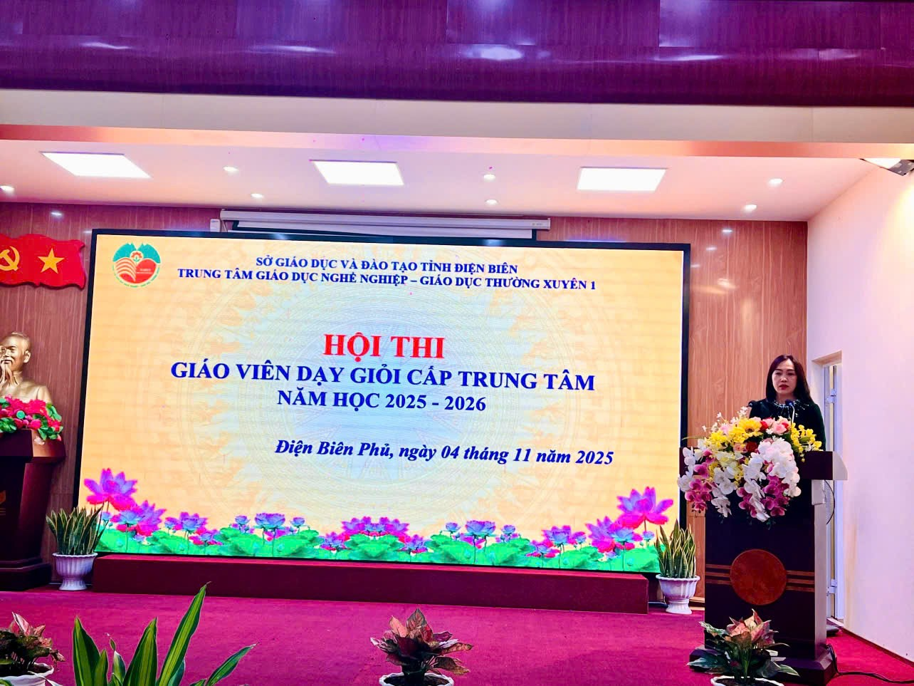 Phát biểu tại buổi lễ, nhà giáo Phạm Thúy - Bí thư Đảng bộ, Giám đốc Trung tâm nhấn mạnh: “Hội thi là dịp để tôn vinh năng lực sư phạm, trí tuệ và bản lĩnh nghề nghiệp của đội ngũ giáo viên; đồng thời tạo động lực để mỗi thầy cô không ngừng học hỏi, rèn luyện, sáng tạo trong giảng dạy”. Hội thi năm nay gồm hai nội dung: trình bày biện pháp góp phần cải tiến, nâng cao chất lượng giảng dạy và thực hành tiết dạy tại lớp, các nội dung này phải được tổ chức nghiêm túc, khách quan, công bằng, đúng quy định. Có thể nói, Hội thi là cơ hội để giáo viên khẳng định năng lực chuyên môn, chia sẻ kinh nghiệm và lan tỏa tinh thần đổi mới, góp phần hiện thực hóa mục tiêu phát triển bền vững của Trung tâm GDNN-GDTX 1 trong giai đoạn mới.