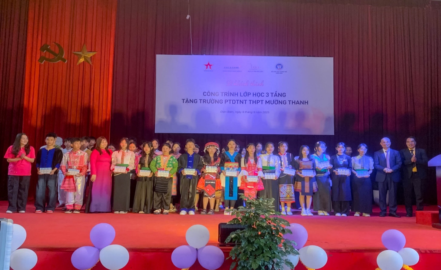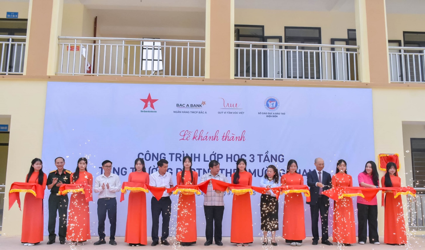 Để đáp ứng nhu cầu cấp thiết đó, Ngân hàng TMCP Bắc Á và Quỹ Vì Tầm Vóc Việt phối hợp cùng Báo Quân đội nhân dân và Sở GD&ĐT tỉnh Điện Biên đã ký Thỏa thuận hợp tác theo Văn bản số 13-24/TTHT/QĐND-VSF-GDĐTĐB, ngày 15-9-2024, triển khai xây mới thêm các hạng mục công trình cho nhà trường. Đây là công trình kỷ niệm 70 năm Chiến thắng Điện Biên Phủ, đồng thời chào mừng 30 năm thành lập Ngân hàng TMCP Bắc Á và 10 năm thành lập Quỹ Vì Tầm Vóc Việt và là một món quà tri ân tới Điện Biên - mảnh đất anh hùng. Theo đó, Quỹ Vì Tầm Vóc Việt ủng hộ 6,5 tỉ đồng xây dựng Công trình nhà lớp học 3 tầng tặng Trường PTDTNT THPT Mường Thanh, Sở Giáo dục và Đào tạo Điện Biên sử dụng nguồn nhân lực sẵn có để thực hiện các chi phí gián tiếp. Công trình được hoàn thành góp phần giúp nhà trường đủ điều kiện đón thêm 105 học sinh trong năm học 2025-2026, nâng tổng số học sinh năm nay lên 455 học sinh. Phát biểu tại buổi lễ, Ông Chu Nguyên Bình, Phó Tổng Giám đốc Ngân hàng TMCP Bắc Á đại diện các đơn vị nhấn mạnh: “Công trình lớp học 3 tầng tại Trường PTDTNT THPT Mường Thanh không chỉ là hạ tầng giáo dục mới, mà còn minh chứng cho sự quan tâm của Đảng, Nhà nước và toàn xã hội đối với thế hệ trẻ, đặc biệt là học sinh dân tộc thiểu số vùng cao. Ngôi trường sẽ chắp cánh tri thức, nuôi dưỡng khát vọng, giúp các em học tập, rèn luyện tốt hơn, trở thành nguồn nhân lực chất lượng, góp phần xây dựng Điện Biên giàu đẹp, bền vững”.