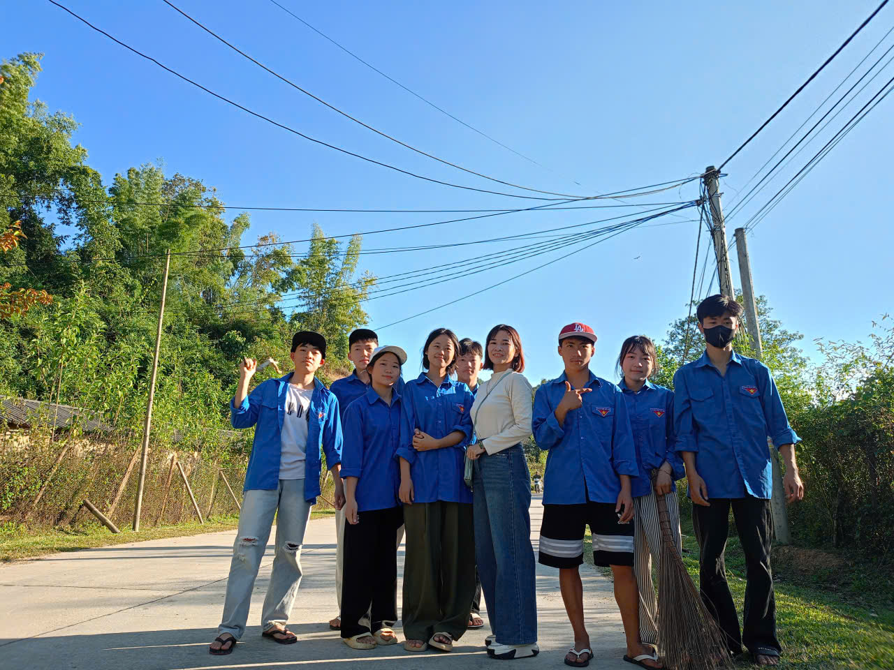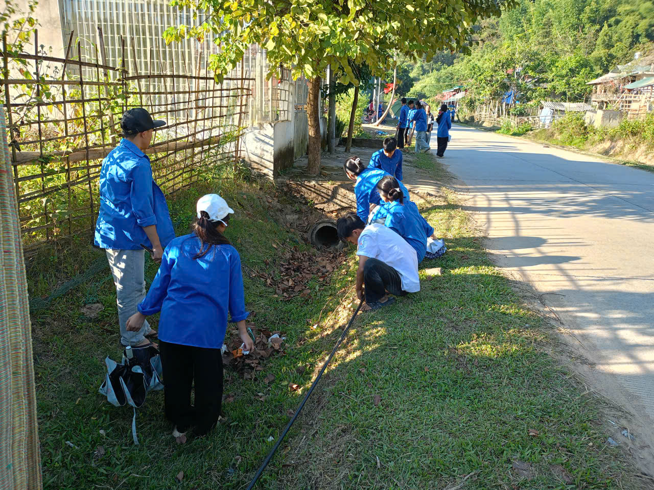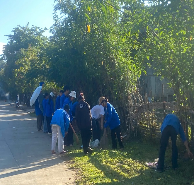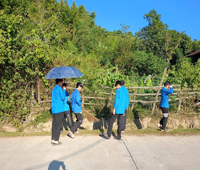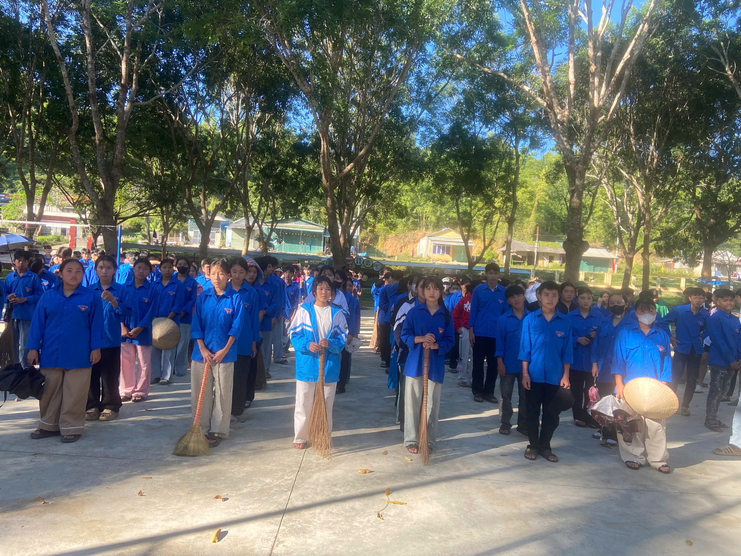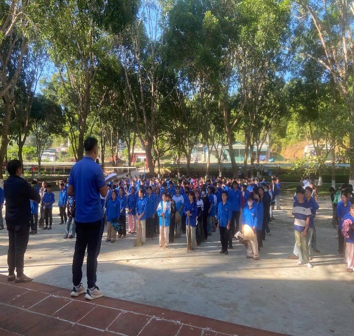 Ngay từ sớm, sân trường đã rộn ràng tiếng nói cười, tiếng chổi tre,  nhưng hơn hết là âm thanh của niềm tự hào. Các đoàn viên, học sinh cùng thầy cô tập trung đầy đủ, mang trên mình sắc áo xanh tình nguyện, như một lời khẳng định mạnh mẽ: “Mường Nhà xanh hơn là trách nhiệm và ước mơ của chúng tôi.”