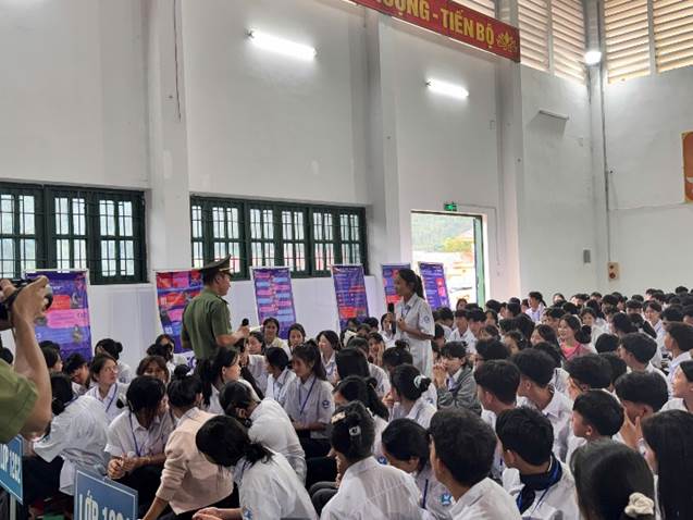 Trong phần trao đổi, tương tác, các em học sinh và giáo viên nhà trường đã hào hứng đặt câu hỏi, bày tỏ quan điểm, chia sẻ cảm nhận. Nhiều vấn đề thực tiễn được thảo luận, giúp học sinh hiểu rõ hơn tầm quan trọng của việc bảo vệ bản thân và bạn bè, không để ai “phải một mình” trước khó khăn, nguy cơ.