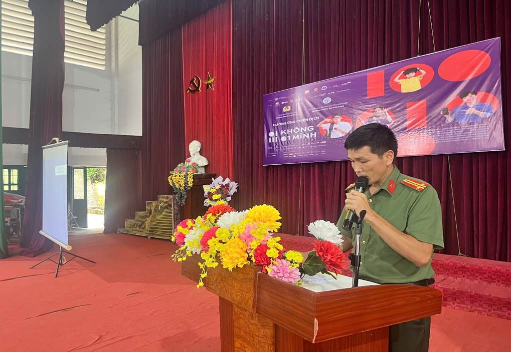 Phần trung tâm của chương trình là buổi tuyên truyền chuyên đề “Không một mình” do cán bộ Phòng PA05 Công an tỉnh Điện Biên trực tiếp triển khai. Nội dung tập trung vào việc nâng cao nhận thức về an ninh mạng, phòng chống xâm hại trẻ em, bạo lực học đường và kỹ năng tự bảo vệ bản thân. Các cán bộ tuyên truyền cũng chia sẻ nhiều tình huống thực tế, cách ứng xử khi gặp nguy hiểm, cũng như hướng dẫn học sinh tìm kiếm sự hỗ trợ từ thầy cô, gia đình và cơ quan chức năng.