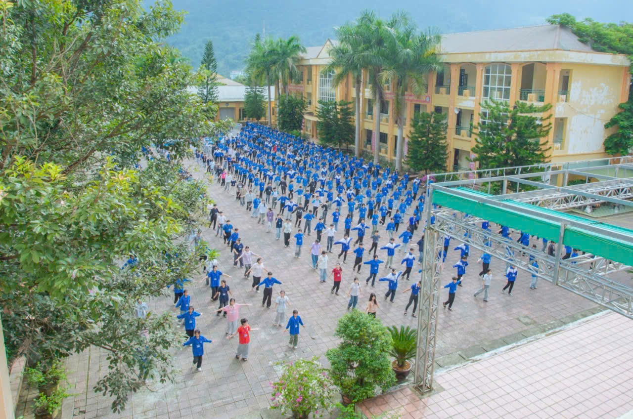 Học sinh toàn trường trong hoạt động thể dục giữa giờ