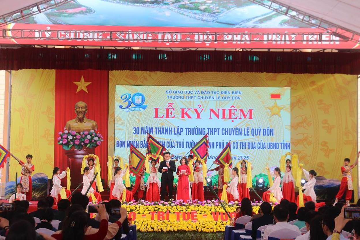 Dienbien.edu.vn - Sáng ngày 08 tháng 11 năm 2025, tại mảnh đất lịch sử Điện Biên Phủ anh hùng, Trường THPT Chuyên Lê Quý Đôn đã long trọng tổ chức Lễ Kỷ niệm 30 năm thành lập trường (1995-2025). Sự kiện không chỉ là dấu mốc son trên hành trình kiến tạo tri thức mà còn là một diễn đàn ý nghĩa, sâu sắc để các thế hệ thầy và trò cùng nhau khắc ghi lòng tri ân, ôn lại truyền thống vẻ vang và cùng nhau hướng tới một tầm nhìn phát triển bền vững trong tương lai. Sự thành công rực rỡ và ấm áp của buổi lễ là minh chứng hùng hồn cho tinh thần đoàn kết sắt son của Ban Giám hiệu cùng toàn thể tập thể sư phạm nhà trường.