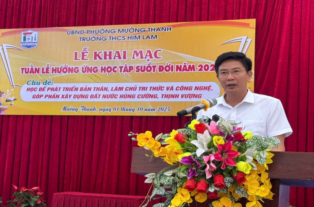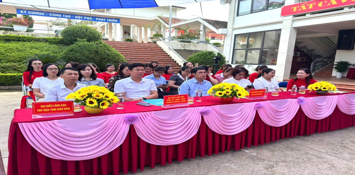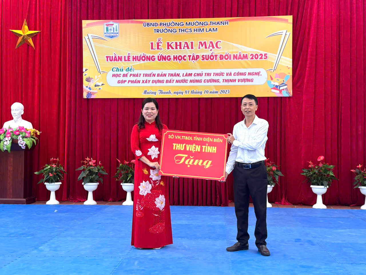 Buổi lễ diễn ra trong không khí trang nghiêm và hân hoan. Sự kiện có sự hiện diện của đồng chí Trần Văn Sinh – Ủy viên Ban thường vụ Đảng ủy, Phó chủ tịch UBND phường Mường Thanh, đại diện Thư viện tỉnh Điện Biên, đại diện Sở Giáo dục và Đào tạo tỉnh Điện Biên, cùng lãnh đạo các đơn vị trường học trên địa bàn phường. Buổi lễ còn thu hút sự tham gia tích cực của đại diện hội cha mẹ học sinh trường, tập thể cán bộ, giáo viên, nhân viên cùng 1.158 em học sinh Trường THCS Him Lam.