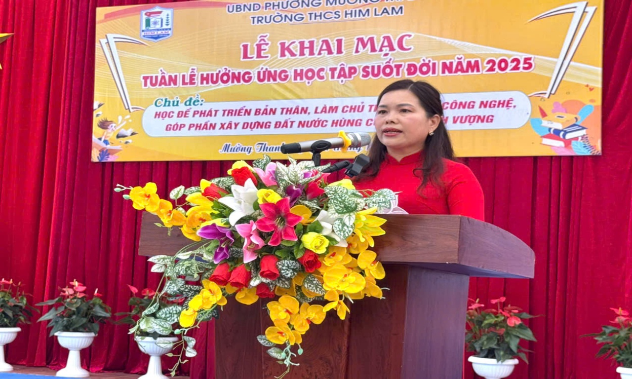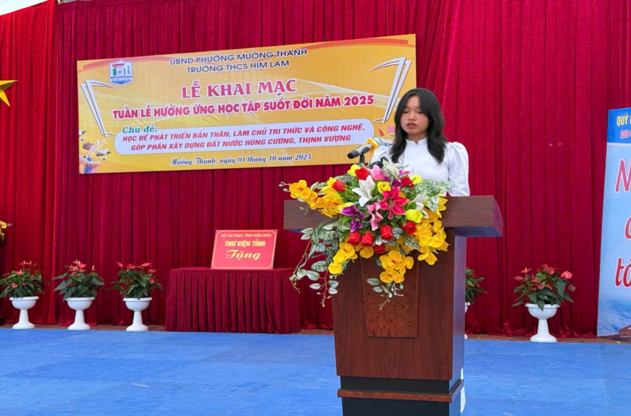 Em Lò Thị Phương Thảo (học sinh Trường PTDTNT THPT Mường Thanh) đại diện học sinh phát biểu, bày tỏ: “Tham gia Tuần lễ, em cảm thấy được truyền cảm hứng mạnh mẽ để tự học, mở rộng tri thức và rèn luyện kỹ năng. Em hiểu rõ hơn tầm quan trọng của việc học tập suốt đời và mong muốn đóng góp một phần công sức vào xây dựng đất nước hùng cường”.