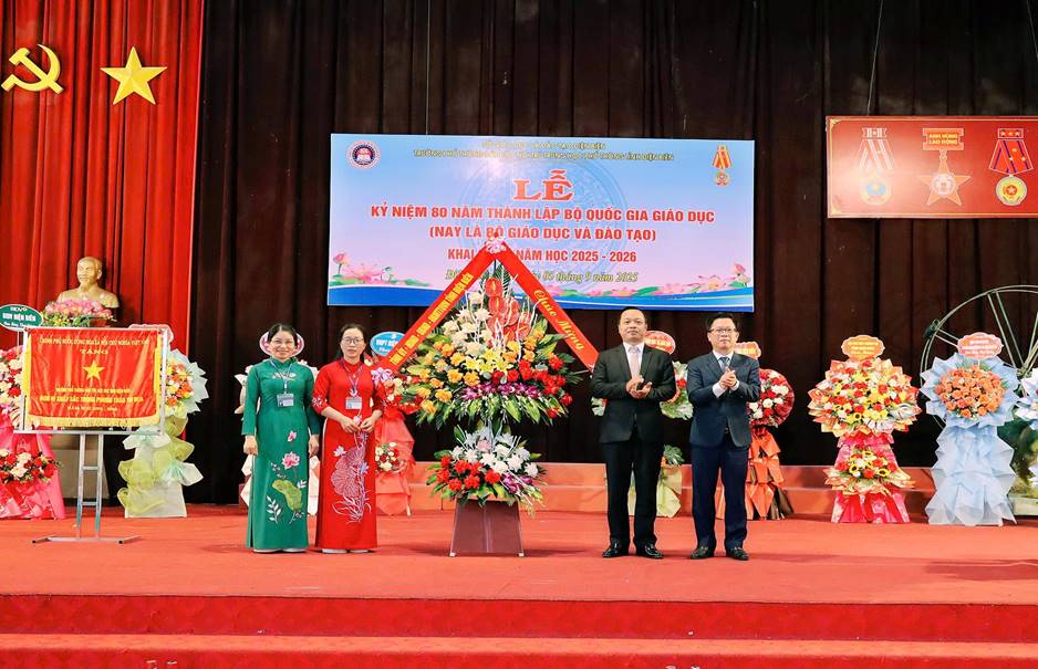 Trong không khí trang trọng của buổi lễ, các đại biểu, thầy và trò nhà trường  đã cùng nhau ôn lại truyền thống 80 năm của ngành Giáo dục; khẳng định vai trò, vị thế của ngành Giáo dục trong sự nghiệp phát triển chung của đất nước với tinh thần đổi mới, sáng tạo, hướng tới một nền giáo dục hiệu quả và chất lượng. Đặc biệt được lắng nghe âm thanh vang vọng của tiếng trống khai trường cùng một thời điểm tại tất cả các ngôi trường trên toàn quốc, lắng nghe phát biểu chỉ đạo và chúc mừng của đồng chí Tô Lâm - Tổng Bí thư BCH Trung ương Đảng Cộng sản Việt Nam, thư gửi ngành Giáo dục nhân dịp khai giảng năm học 2025-2026 của Chủ tịch nước Lương Cường. Những lời thăm hỏi, động viên ân cần của các đồng chí lãnh đạo tỉnh đối với thầy và trò nhà trường… Tất cả đã trở thành nguồn động viên to lớn, là động lực để mỗi thầy, cô giáo, mỗi em học sinh sẵn sàng bước vào một năm học mới tràn đầy khí thế thắng lợi mới.