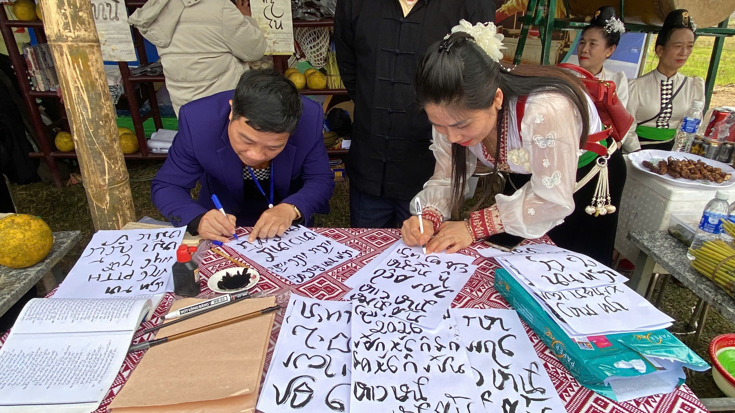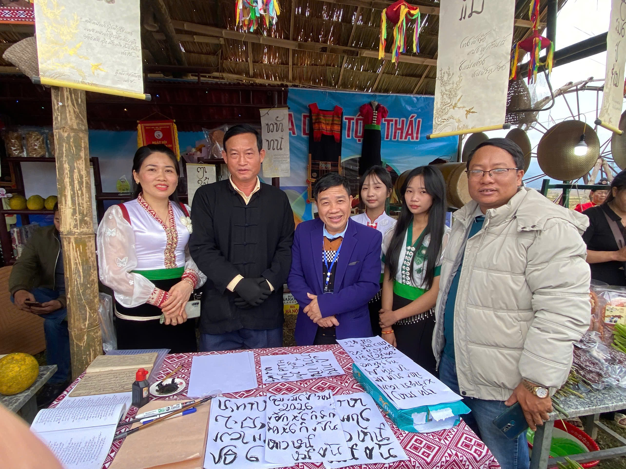 Giao lưu với và trải nghiệm viết chữ Thái cổ cùng Nghệ nhân Tòng Văn Hân - Phó chủ tịch Hội Văn hóa Dân Tộc Thái Tỉnh Điện Biên, Ủy viên Ban chấp hành Hội VHNT tỉnh Điện Biên