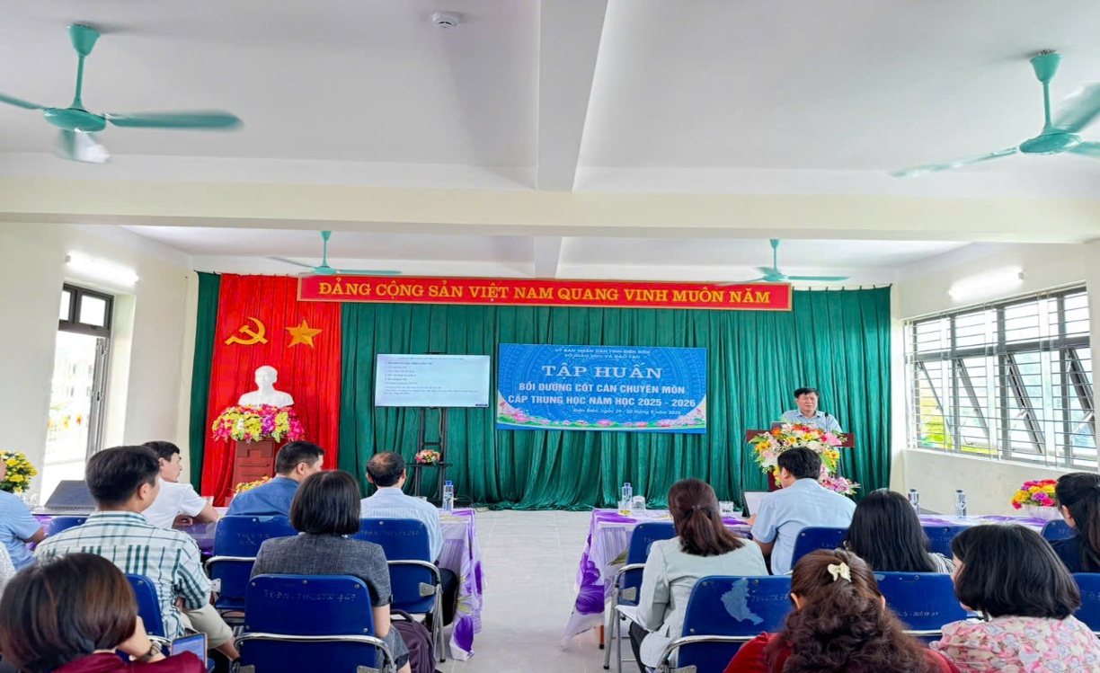Tham gia tập huấn, bồi dưỡng có gần 700 giáo viên cốt cán từ 15 cụm chuyên môn cấp THCS của 45 xã/phường, 9 cụm chuyên môn cấp THPT trong toàn tỉnh. Trong đợt bồi dưỡng, tập huấn giảng viên đã tập trung vào những vấn đề cốt lõi như: Trao đổi, thực hành xây dựng kế hoạch môn học, kế hoạch bài dạy; tăng cường đổi mới phương pháp dạy học phát triển phẩm chất, năng lực học sinh; Thực hành xây dựng đề kiểm tra, đánh giá học sinh theo Thông tư 22/2021/TT-BGDĐT và Công văn 7991/BGDĐT-GDTrH; Ứng dụng trí tuệ nhân tạo (AI) và chuyển đổi số trong dạy học, kiểm tra, đánh giá; Giải đáp khó khăn, vướng mắc, chia sẻ kinh nghiệm thực tiễn trong giảng dạy. Bồi dưỡng đội ngũ cốt cán lần này là khâu then chốt nhằm lan tỏa tinh thần đổi mới, nâng cao chất lượng giáo dục trung học trong bối cảnh chính quyền địa phương 2 cấp, góp phần thực hiện thắng lợi nhiệm vụ năm học 2025–2026.
