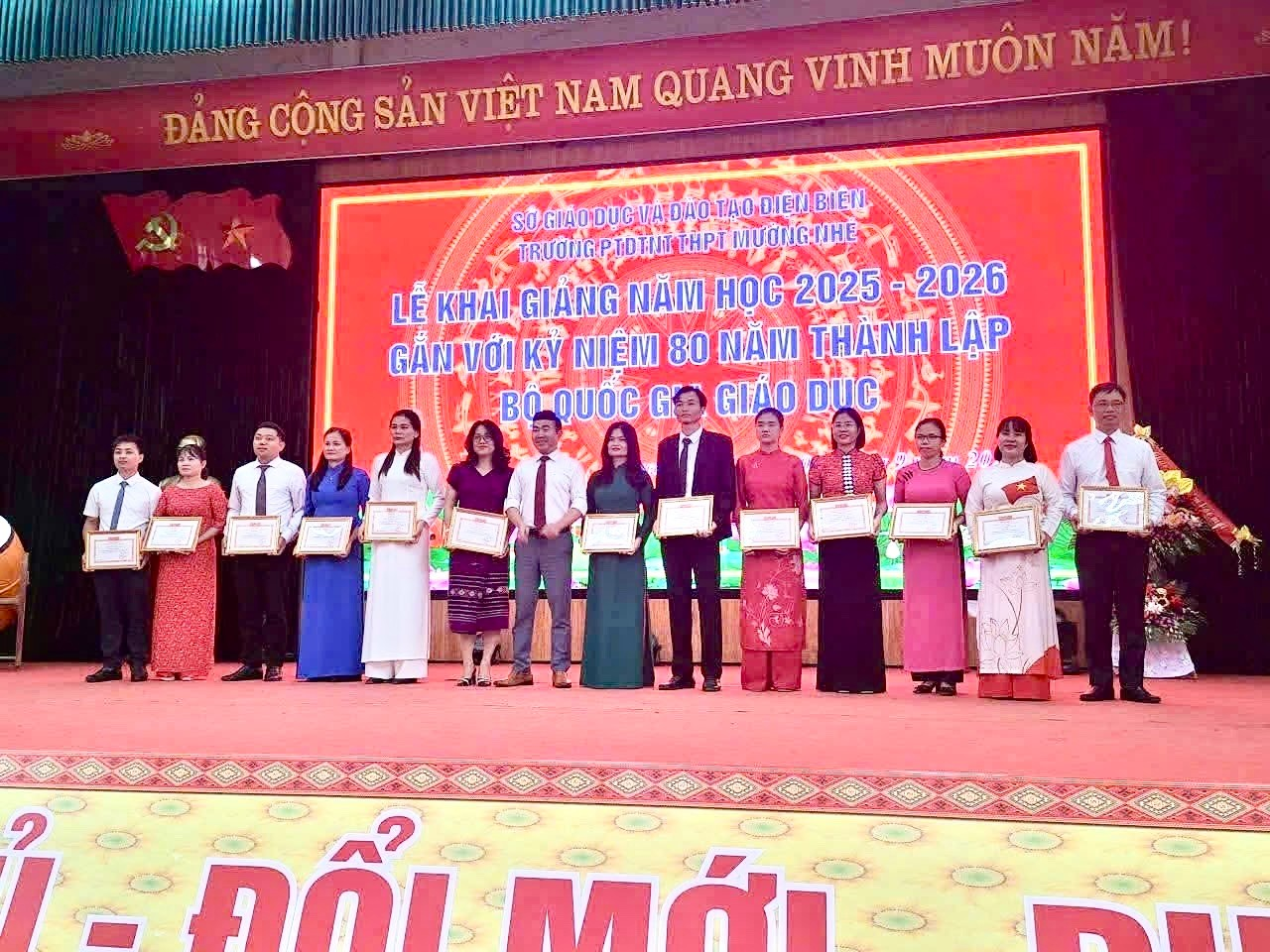 Nhờ tinh thần đoàn kết, thống nhất và phối hợp hiệu quả giữa các bộ phận, Trường PTDTNT THPT Mường Nhé đã đạt được những kết quả nổi bật trong năm học 2024-2025: Chất lượng giáo dục hai mặt tăng so với năm học 2023-2024. Tỉ lệ kết quả rèn luyện Khá-Tốt đạt 99,1%. Kết quả học tập từ Đạt trở lên đạt 100% (trong đó tỉ lệ Khá, Tốt đạt 81.3%); Tỷ lệ tốt nghiệp đạt 100% cao hơn mặt bằng chung toàn tỉnh, nằm trong top đầu khối các trường THPT trong toàn tỉnh, điểm trung bình các bài thi đứng vị trí 12/42 các đơn vị trường THPT trên toàn tỉnh; Kết quả thi HSG cấp tỉnh đạt 88 giải, trong đó: 14 giải Ba, 74 giải Khuyến khích (tăng 24 giải so với năm học 2023-2024); Thi KHKT cấp tỉnh: 01 dự án đạt giải Tư; Tại các Hội thi phong trào VHVN-TDTT nhà trường luôn xếp ở vị cao trong khối các trường Nội trú; Kết quả tham gia cuộc thi cấp Quốc gia: đạt 01 giải Ba cấp quốc gia tại cuộc thi “An toàn giao thông cho nụ cười ngày mai”. Chất lượng đội ngũ giáo viên được nâng lên: 100% cán bộ, giáo viên có trình độ đạt chuẩn; 7/47 = 14.9% CB, giáo viên trên chuẩn; 17 giáo viên dạy giỏi các cấp (Trong đó 03 giáo viên dạy giỏi cấp tỉnh, 14 giáo viên dạy giỏi cấp trường). Thi đua, khen thưởng cuối năm học: rất nhiều thầy cô đạt danh hiệu LĐTT, 15 CBGVNV đạt danh hiệu CSTĐCS ; 02 cá nhân nhận bằng khen của Thủ Tướng chính phủ; 01 cá nhân nhận Bằng khen UBND tỉnh; 02 cá nhân đề nghị Giám đốc Sở GDĐT tặng giấy khen. Công đoàn và Đoàn Thanh niên vững mạnh. Trường được Sở GD&ĐT đánh giá xếp loại Hoàn thành xuất sắc nhiệm vụ, được UBND Tỉnh Điện Biên công nhận Tập thể lao động xuất sắc. Những kết quả này không chỉ phản ánh hiệu quả của tập thể đoàn kết, mà còn là minh chứng cho sự nỗ lực, sáng tạo và tận tâm của đội ngũ nhà trường trong việc nâng cao chất lượng giáo dục vùng cao.
