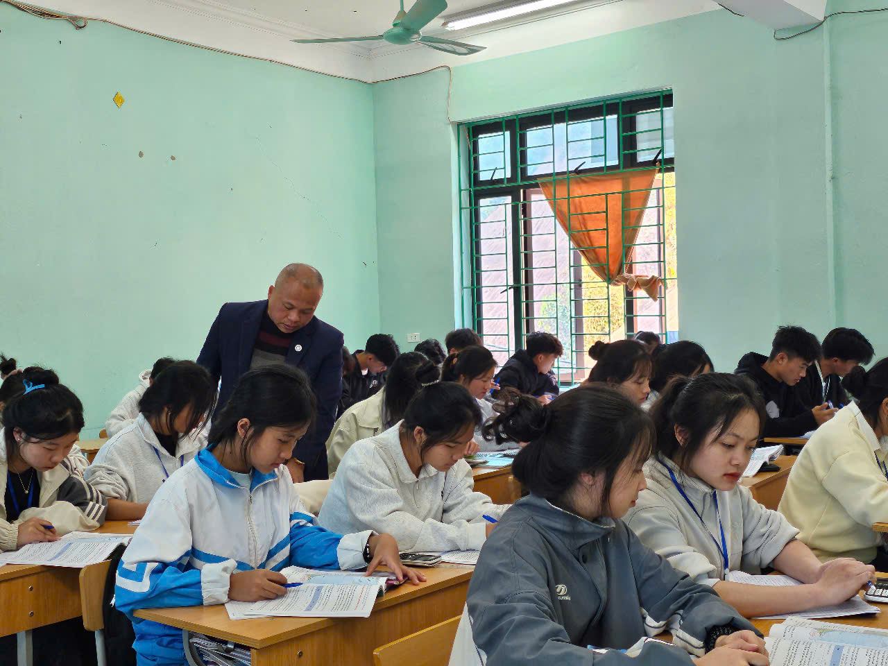Thầy Phạm Xuân Chính, Phó Hiệu trưởng say xưa hướng dẫn học sinh ôn thi thi tốt nghiệp