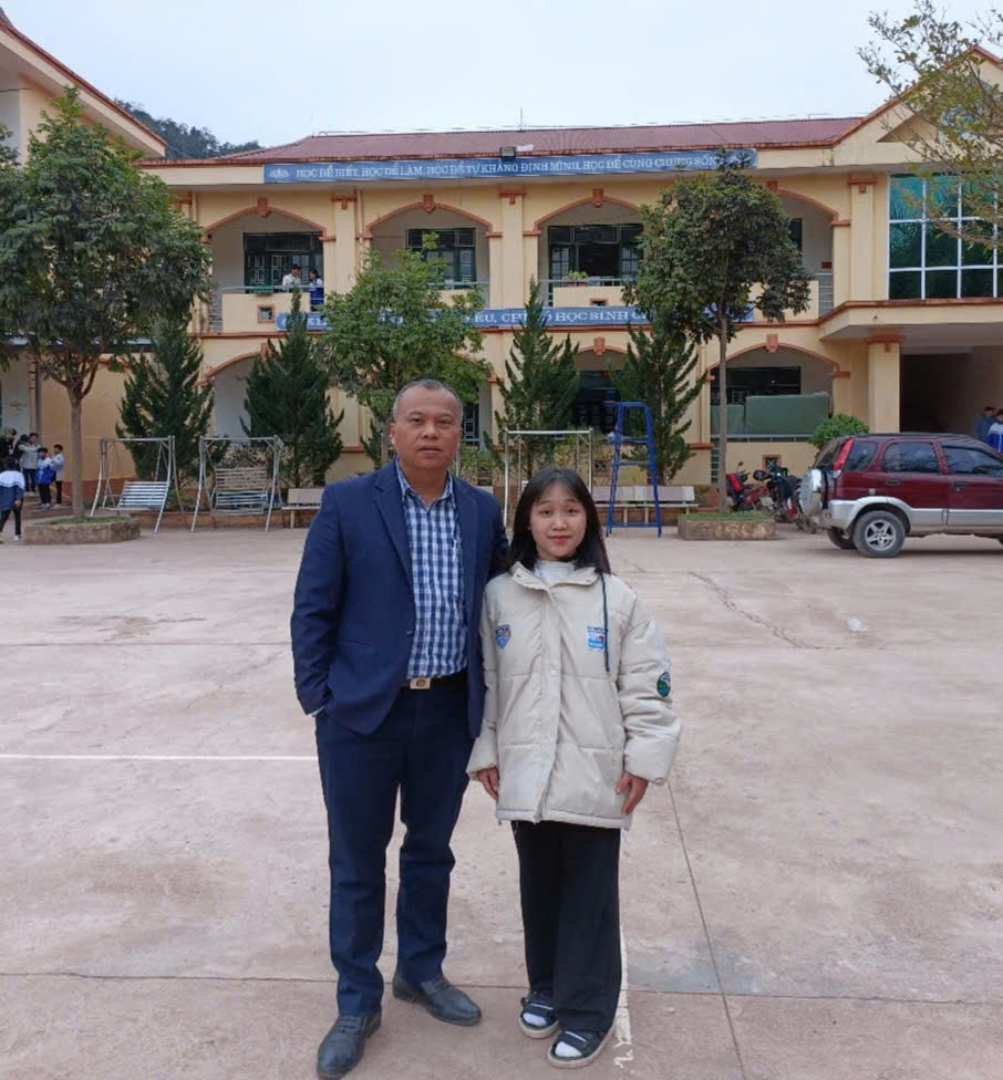 Thầy giáo Phạm Xuân Chính cùng với em Phùng Mỹ Khé đạt giải Ba quốc gia môn Địa lý