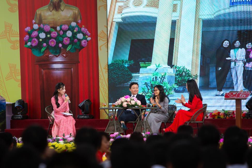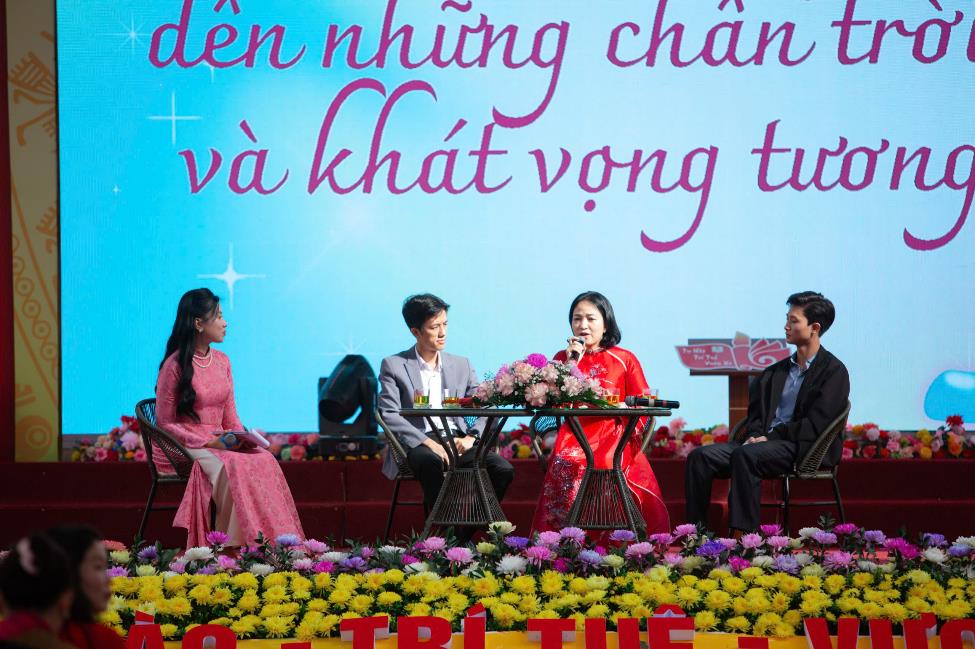 Phần Tọa đàm chính thức mở ra với chủ đề "Tri ân những trái tim khai mở và gắn bó trọn đời", tập trung vào các thế hệ lãnh đạo nhà trường. Sự hội ngộ của NGƯT Lê Thị Mai, Nhà giáo Phạm Hồng Phong (Nguyên Hiệu trưởng) và NGƯT Bùi Thị Anh (Hiệu trưởng đương nhiệm) là một khoảnh khắc lịch sử. Sự kiện này có ý nghĩa sâu sắc, không chỉ tri ân những cống hiến mà còn phác họa rõ ràng quá trình chuyển giao giá trị và tầm nhìn qua ba giai đoạn phát triển của trường.