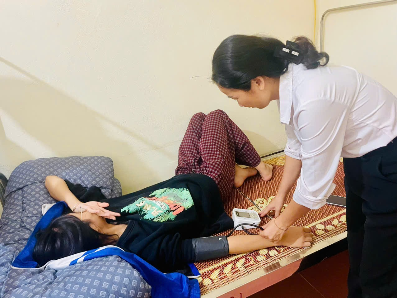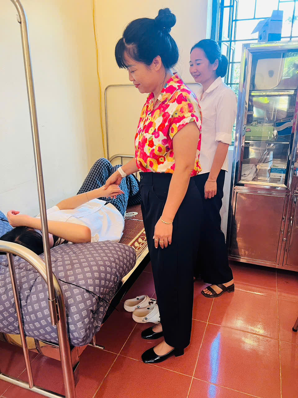 Cô Trần Thị Hải- Phó bí thư Chi bộ, phó hiệu trưởng, thăm học sinh tại phong ý tế học đường