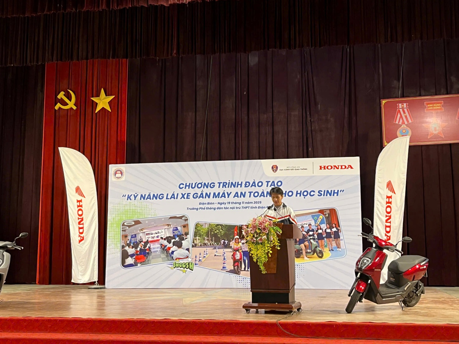 Phát biểu tại chương trình, đại diện Honda Việt Nam nhấn mạnh trách nhiệm của doanh nghiệp trong việc đồng hành cùng các nhà trường nâng cao hiểu biết pháp luật giao thông và kỹ năng lái xe an toàn cho học sinh, đặc biệt tại các địa bàn miền núi như Điện Biên.