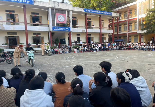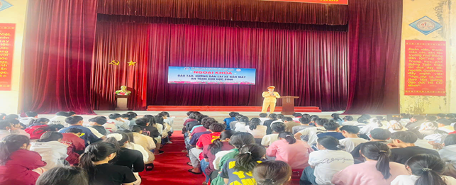 Tại buổi tuyên truyền, Thiếu tá Bùi Văn Trường, cán bộ Trạm CSGT khu vực Tuần Giáo, đã truyền đạt những nội dung trọng tâm của Luật Giao thông đường bộ, nhấn mạnh các quy định về độ tuổi điều khiển phương tiện, đội mũ bảo hiểm đúng quy chuẩn, các hành vi bị nghiêm cấm và kỹ năng đảm bảo an toàn khi tham gia giao thông. Thông qua những ví dụ thực tế, hình ảnh trực quan, học sinh được trang bị thêm kiến thức, nâng cao ý thức chấp hành pháp luật, chủ động phòng tránh nguy cơ tai nạn giao thông.