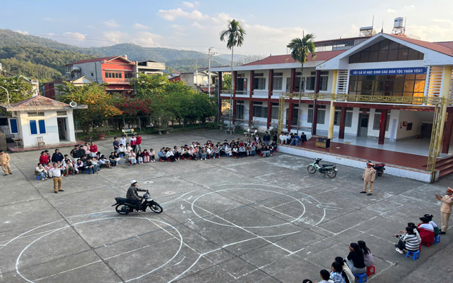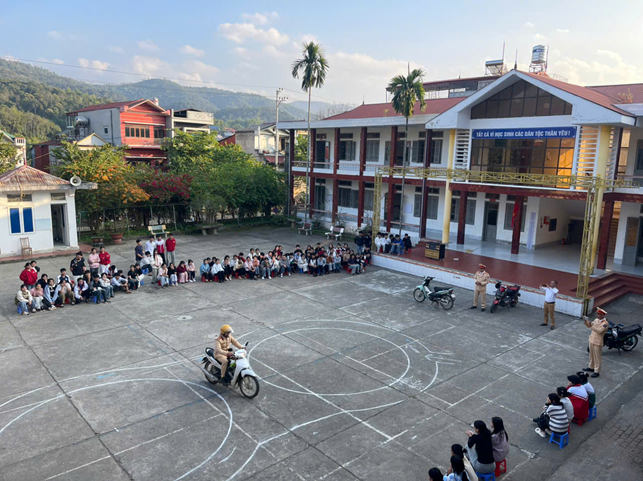 Trường PTDTNT THPT Tuần Giáo tuyên truyền pháp luật về ATGT và hướng dẫn kỹ năng lái xe gắn máy an toàn cho học sinh