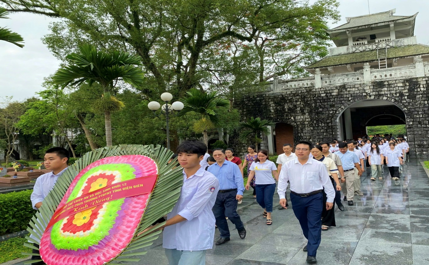Đoàn CBQL, GV và 182 học sinh trường PTDTNT tỉnh Điện Biên dâng hương, tưởng niệm các anh hùng liệt sỹ tại Đền thờ liệt sỹ