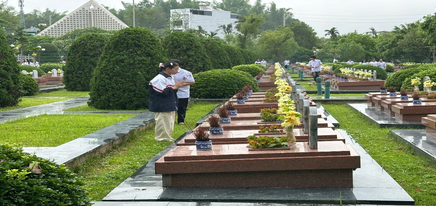 Dẫn đoàn là Nhà giáo Vũ Trung Hoàn - Bí thư Đảng bộ, Hiệu trưởng nhà trường - làm trưởng đoàn. Buổi lễ diễn ra trong không khí trang nghiêm, lặng lẽ, đầy cảm xúc, thể hiện lòng biết ơn sâu sắc với những người đã hy sinh xương máu cho độc lập, tự do của Tổ quốc. Trước hàng trăm bia mộ liệt sĩ, các em học sinh đã dành những phút giây lặng yên, cúi đầu thành kính, dâng những nén hương thơm, đặt vòng hoa tươi thắm - những hành động không đơn thuần mang tính nghi thức mà xuất phát từ tấm lòng biết ơn chân thành.
