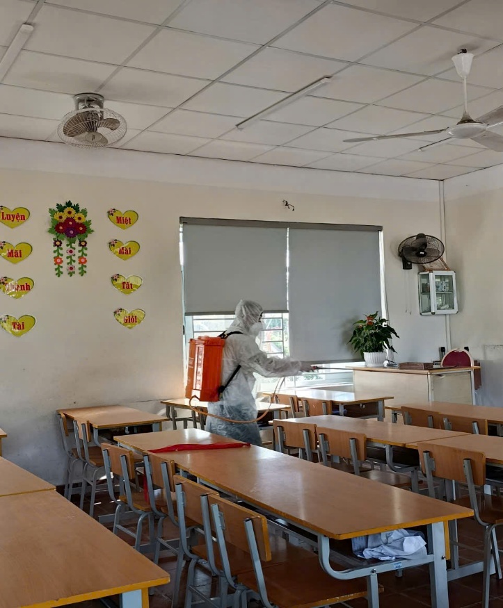 Ngay từ đầu giờ sáng, các đội nhóm phụ trách đã tiến hành làm sạch, phun thuốc khử khuẩn tại các lớp học, phòng chức năng, hành lang, khu vệ sinh và những khu vực sinh hoạt chung. Song song với đó, nhà trường thực hiện rà soát và nhắc nhở học sinh tuân thủ nghiêm các biện pháp phòng, chống dịch theo khuyến cáo của ngành y tế nhằm đảm bảo môi trường giáo dục an toàn, hạn chế nguy cơ lây lan dịch bệnh.