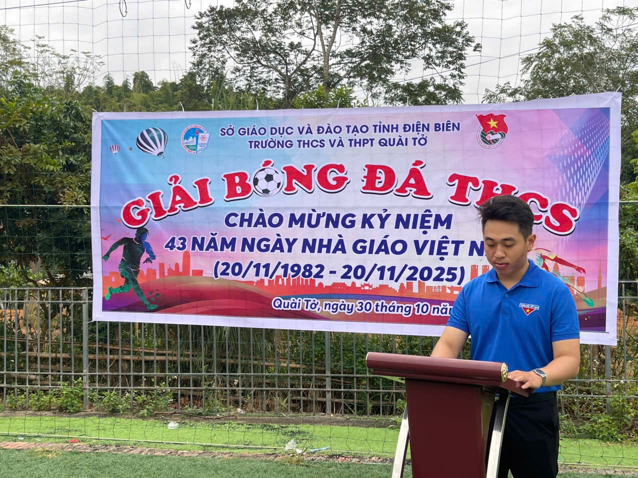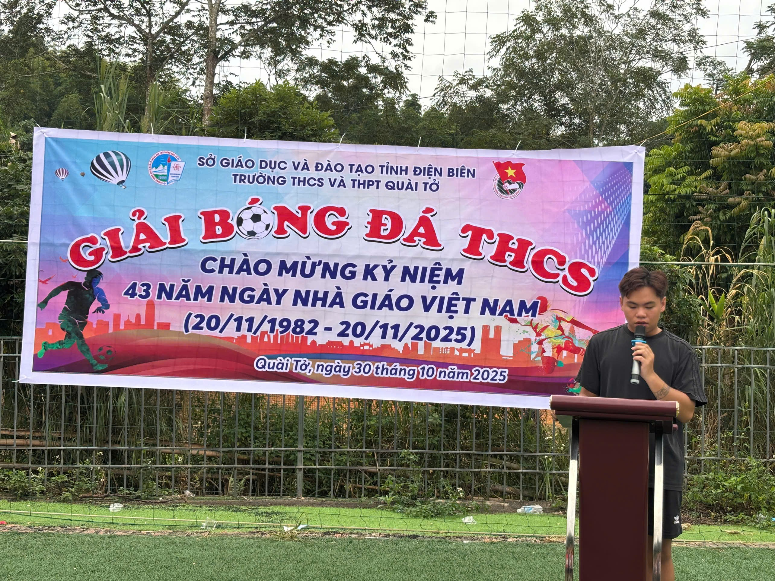 Phát biểu khai mạc giải đấu, đồng chí Lò Thị Hương- Phó Bí thư Đoàn trường nhấn mạnh: “Giải bóng đá THCS không chỉ là hoạt động thiết thực chào mừng ngày Nhà giáo Việt Nam 20/11 mà còn là dịp để học sinh rèn luyện sức khỏe, phát triển tinh thần đoàn kết, trung thực và ý chí vươn lên. Mong rằng các vận động viên thi đấu hết mình với tinh thần “Đoàn kết – Trung thực – Cao thượng – Tiến bộ”, góp phần xây dựng hình ảnh học sinh Quài Tở năng động, tự tin và sáng tạo.”