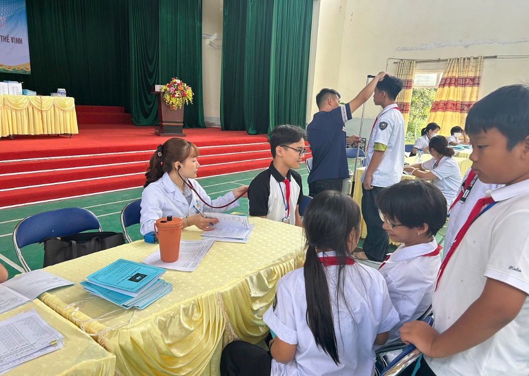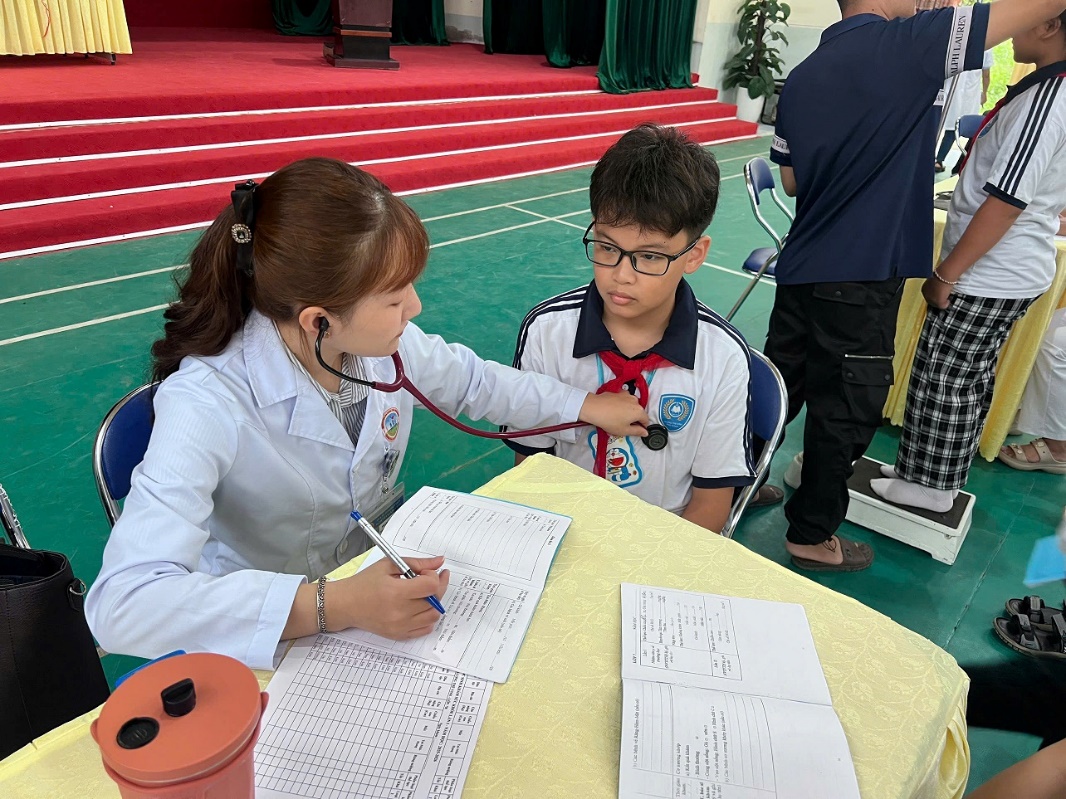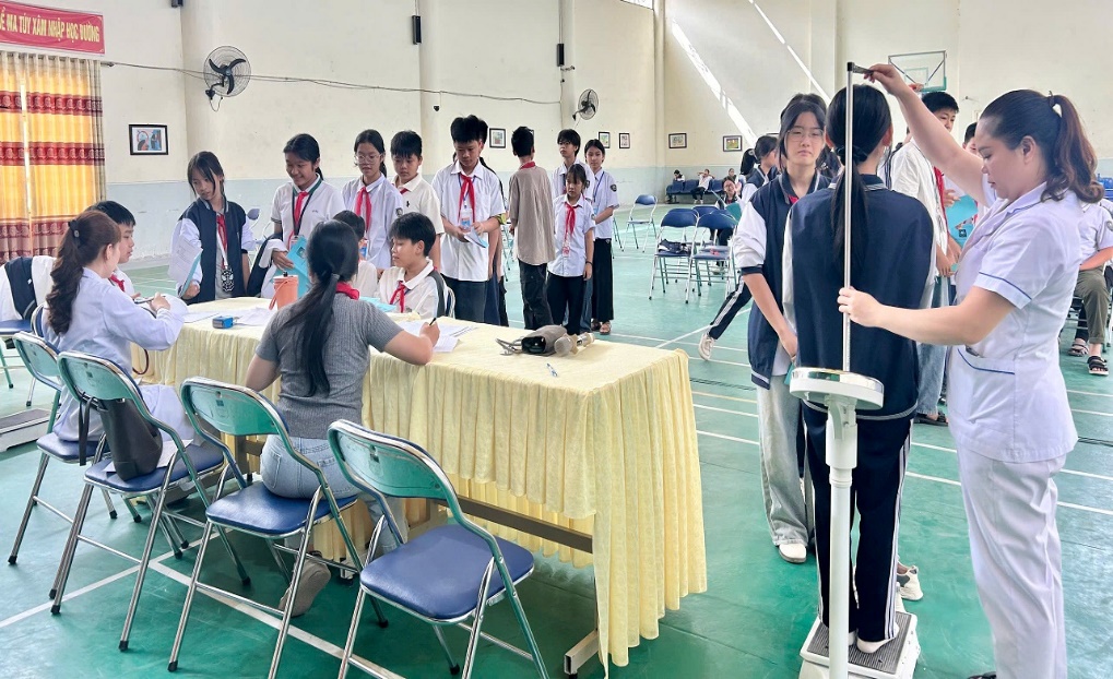 Trong đợt kiểm tra lần này, các em học sinh được đo chiều cao, cân nặng, kiểm tra thị lực, huyết áp và tư vấn sức khỏe tổng quát. Các bác sĩ tận tình hướng dẫn tư thế ngồi học đúng cách, chế độ ăn uống hợp lý, thói quen sinh hoạt lành mạnh và cách phòng tránh một số bệnh thường gặp theo mùa. Nhiều học sinh tỏ ra rất hào hứng, chủ động đặt câu hỏi về chế độ dinh dưỡng, giấc ngủ, tâm sinh lý tuổi dậy thì. Những buổi trao đổi tuy ngắn gọn nhưng đã mở ra cho các em nhiều kiến thức bổ ích, giúp các em hiểu rõ hơn về cơ thể mình và biết cách yêu thương, chăm sóc bản thân.