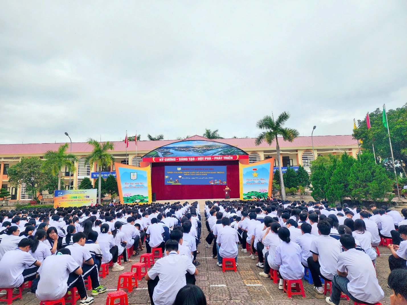 Dienbien.edu.vn-An toàn giao thông không chỉ là một quy định pháp luật, mà còn là văn hóa, là trách nhiệm và là sự thể hiện nét đẹp của mỗi con người trong cộng đồng. Với ý nghĩa đó, sáng ngày 22/9/2025, Trường THPT Chuyên Lê Quý Đôn đã phối hợp cùng Phòng Cảnh sát giao thông đường bộ số 1 - Công an tỉnh Điện Biên tổ chức buổi tuyên truyền, giáo dục pháp luật về an toàn giao thông cho toàn thể học sinh.