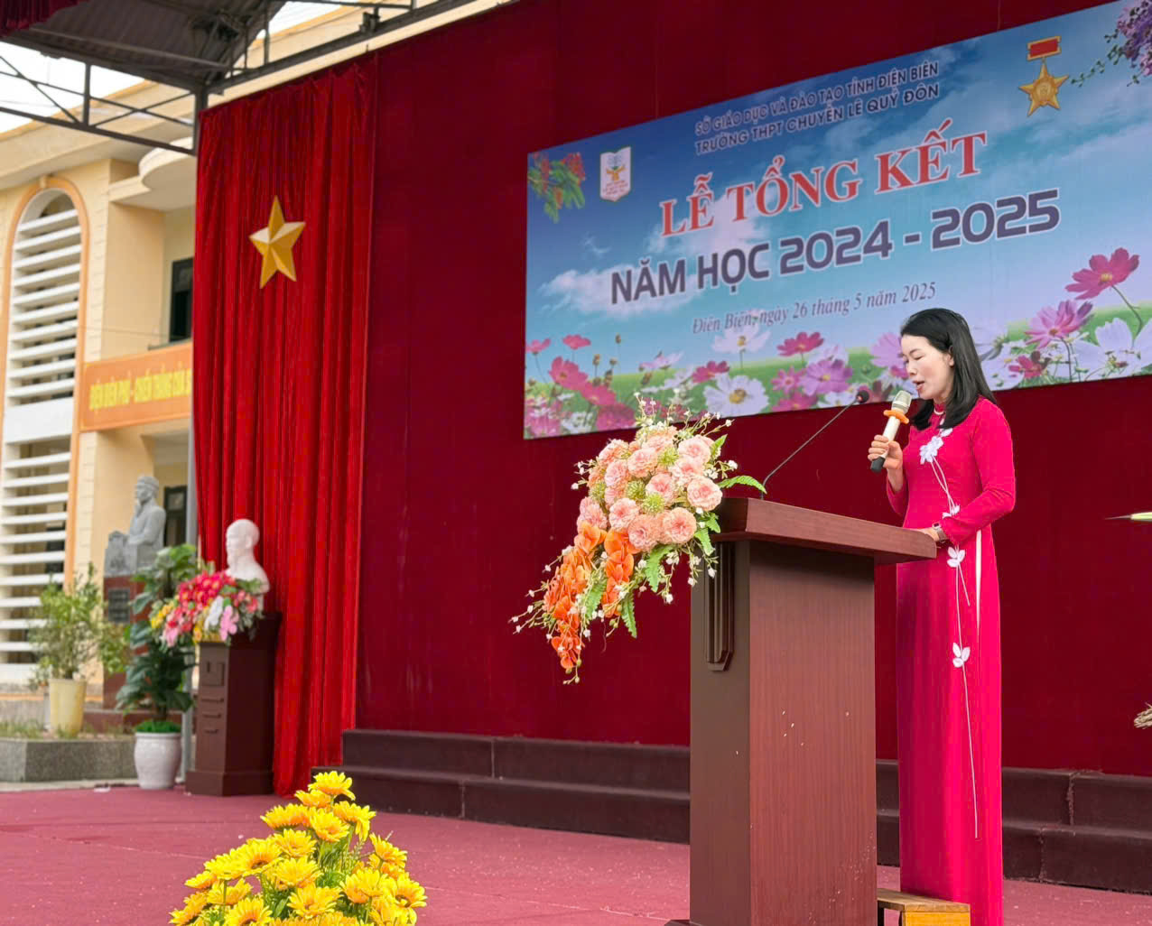 Tại buổi lễ tổng kết, NGƯT Th.s. Bùi Thị Anh - Bí thư Đảng bộ, Hiệu trưởng nhà trường báo cáo công tác giáo dục năm học 2024-2025 nhằm đánh giá những kết quả nổi bật mà thầy và trò đạt được trong năm học vừa qua.
