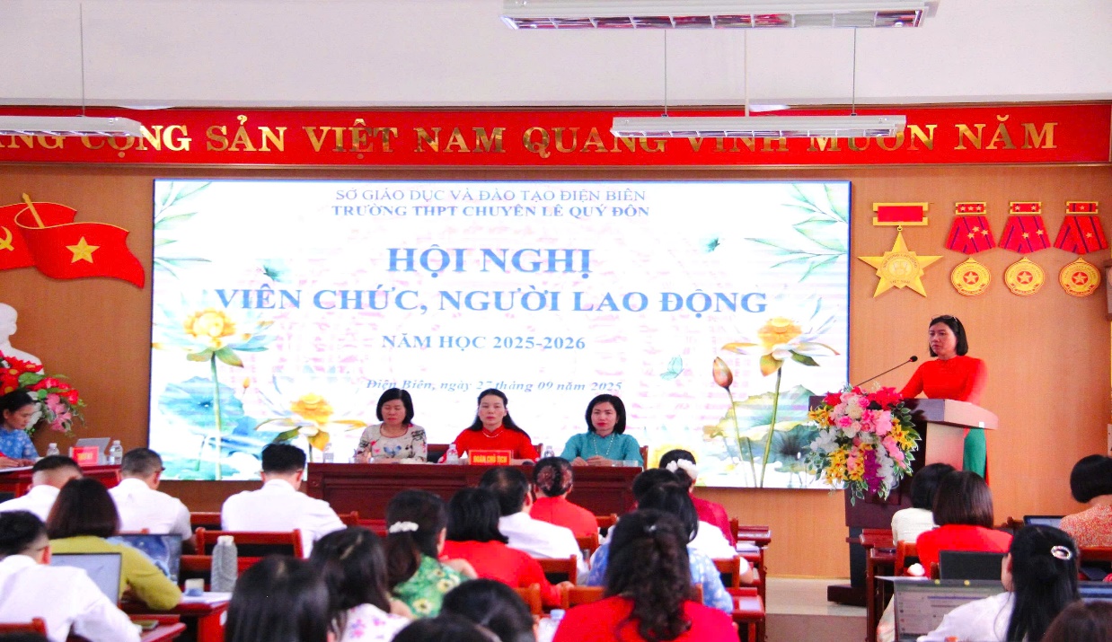 Dienbien.edu.vn-Sáng ngày 27/9/2025, Trường THPT chuyên Lê Quý Đôn đã long trọng tổ chức Hội nghị viên chức, người lao động năm học 2025–2026. Đây là hoạt động thường niên có ý nghĩa quan trọng, nhằm phát huy quyền làm chủ của cán bộ, giáo viên, nhân viên.