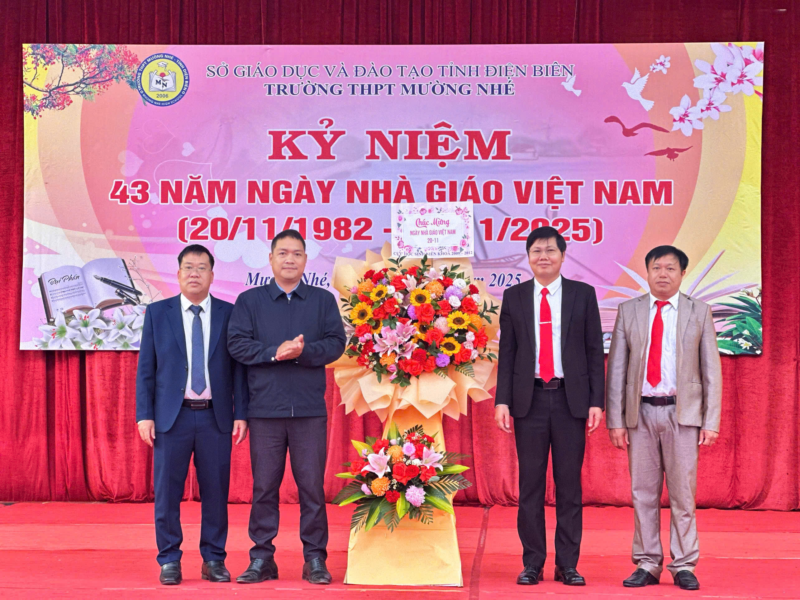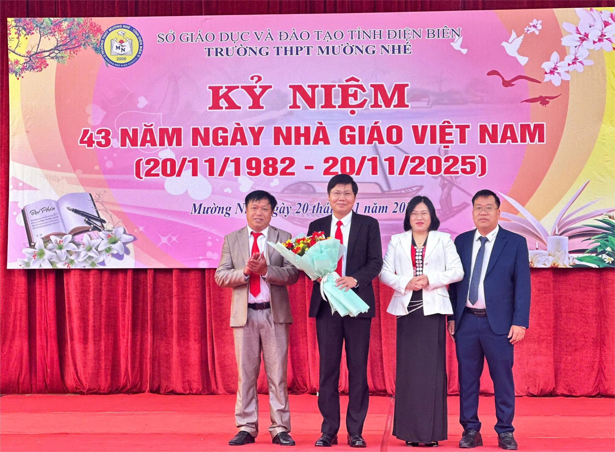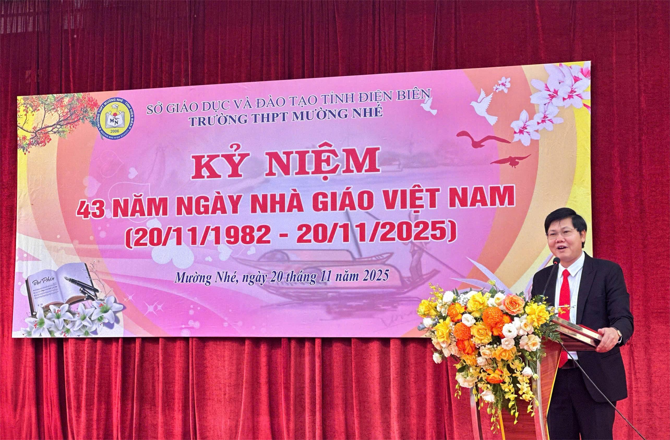 Tại chương trình kỷ niệm, thầy giáo Lê Trường Giang, Bí thư chi bộ, Hiệu trưởng nhà trường đã thông qua diễn văn chào mừng kỷ niệm 43 năm Ngày Nhà giáo Việt Nam. Trong lời diễn văn lắng đọng, thầy đã ghi nhận những cống hiến của các thế hệ thầy cô giáo đã và đang công tác tại trường THPT Mường Nhé. Đặc biệt với tình thương, sự gần gũi, trách nhiệm của người thầy không chỉ giúp các em tiến bộ từng ngày mà còn là động lực để thầy cô gắn bó với mảnh đất này bằng cả trái tim.
