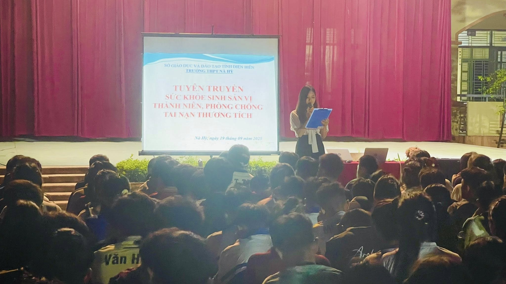 Dienbien.edu.vn-Chăm sóc sức khỏe sinh sản vị thành niên và trang bị kỹ năng phòng tránh tai nạn thương tích là một trong những nhiệm vụ quan trọng của công tác giáo dục học đường. Bởi nếu thiếu kiến thức và sự định hướng đúng đắn, học sinh dễ gặp phải những nguy cơ ảnh hưởng đến việc học tập, lối sống, thậm chí cả tương lai và sự phát triển của xã hội. Nhằm nâng cao nhận thức và trang bị những kiến thức cần thiết, tối ngày 19/9/2025, Trường THPT Nà Hỳ đã tổ chức chương trình tuyên truyền về sức khỏe sinh sản vị thành niên và phòng chống tai nạn thương tích cho học sinh nội trú năm học 2025–2026.