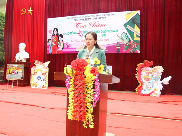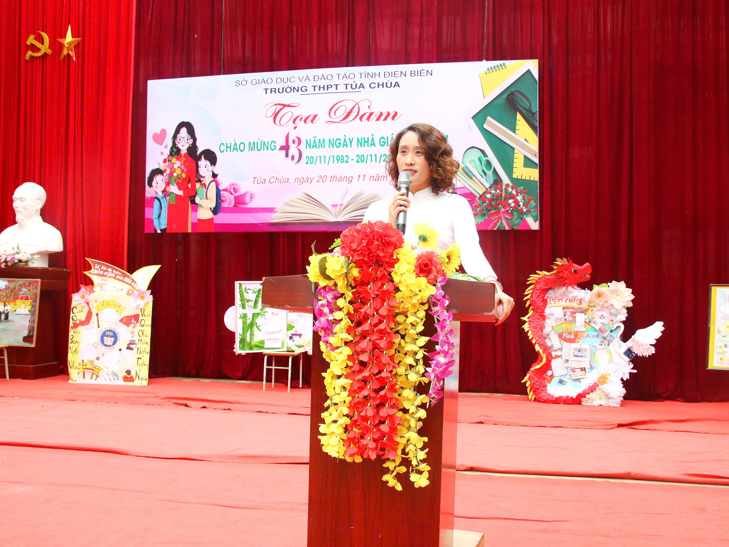 Mở đầu buổi tọa đàm, cô giáo Đỗ Thị Mỹ Hạnh – Bí thư Chi bộ, Hiệu trưởng nhà trường đã trình bày diễn văn ý nghĩa, ôn lại truyền thống vẻ vang của ngành giáo dục và gửi lời tri ân sâu sắc đến các thế hệ thầy cô giáo đã đóng góp cho sự phát triển của Trường THPT Tủa Chùa. Trong bài phát biểu, cô nhấn mạnh những nỗ lực không ngừng của tập thể sư phạm nhà trường trong việc đổi mới phương pháp dạy học, nâng cao chất lượng giáo dục. Sự đồng hành của các cấp lãnh đạo, phụ huynh, học sinh trong quá trình xây dựng môi trường học tập dân chủ – kỷ cương – nhân ái. Đồng thời thể hiện niềm tin và kỳ vọng vào thế hệ học sinh hôm nay – những mầm xanh của vùng cao Tủa Chùa, giàu nghị lực, giàu khát vọng vươn lên. Bài diễn văn đã khơi dậy niềm xúc động, tự hào và tiếp thêm động lực để mỗi giáo viên tiếp tục cống hiến với nghề.