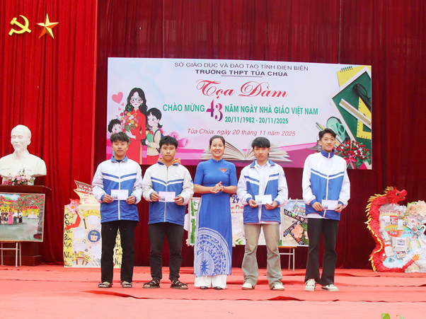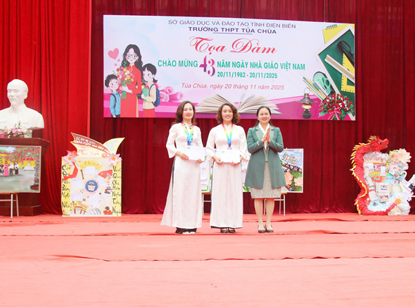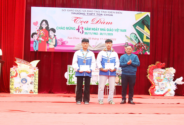 Một trong những nội dung quan trọng của buổi tọa đàm là tuyên dương, khen thưởng các tập thể, cá nhân có thành tích xuất sắc trong đợt thi đua chào mừng ngày Nhà giáo Việt Nam 20/11. Những thành tích tiêu biểu trong Đại hội TDTT cấp tỉnh của thầy cô và các em học sinh đã khẳng định tinh thần vượt khó vươn lên của nhà trường trong hành trình gieo chữ nơi vùng cao Tủa Chùa còn nhiều gian khó.