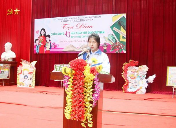 Trong không khí ấm áp của tình thầy trò, em Vũ Thị Phương Thuỳ -Học sinh lớp 12C4 đã phát biểu cảm nghĩ và bày tỏ sự tri ân với công lao dạy dỗ, dìu dắt của thầy cô: “Thầy cô là người đã thắp sáng ước mơ của chúng em giữa núi rừng Tủa Chùa. Chúng em xin hứa sẽ học tập thật tốt để không phụ công thầy cô.” Lời phát biểu giản dị mà sâu sắc đã khiến nhiều thầy cô và đại biểu xúc động.