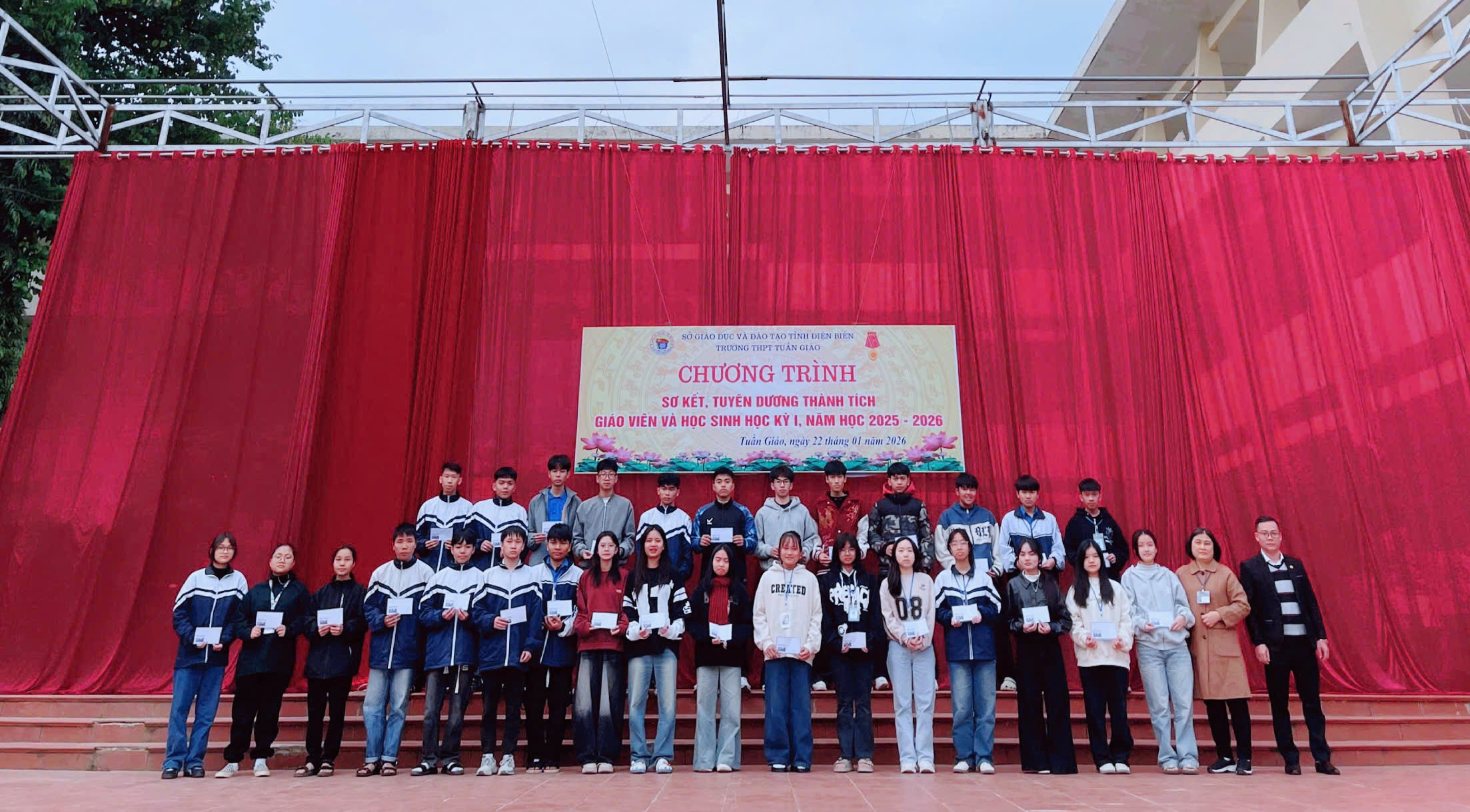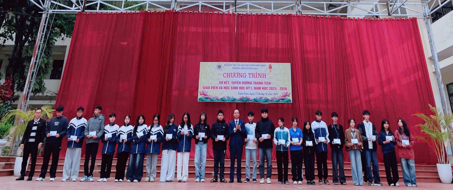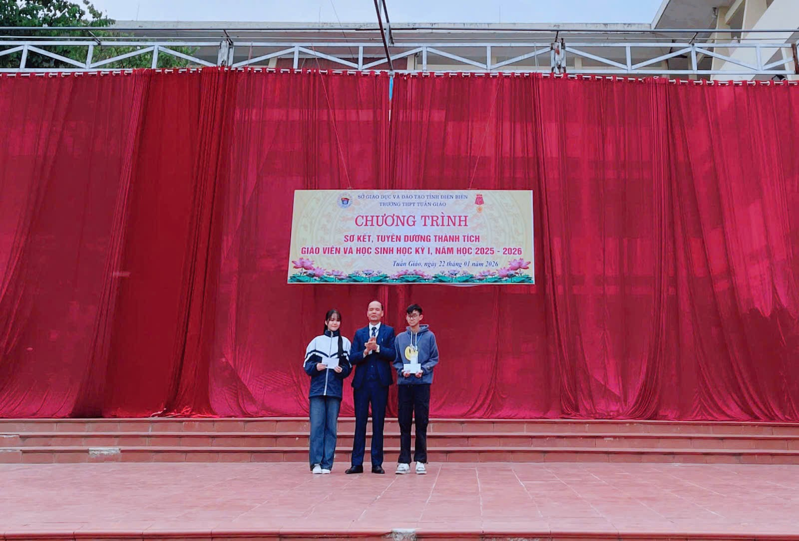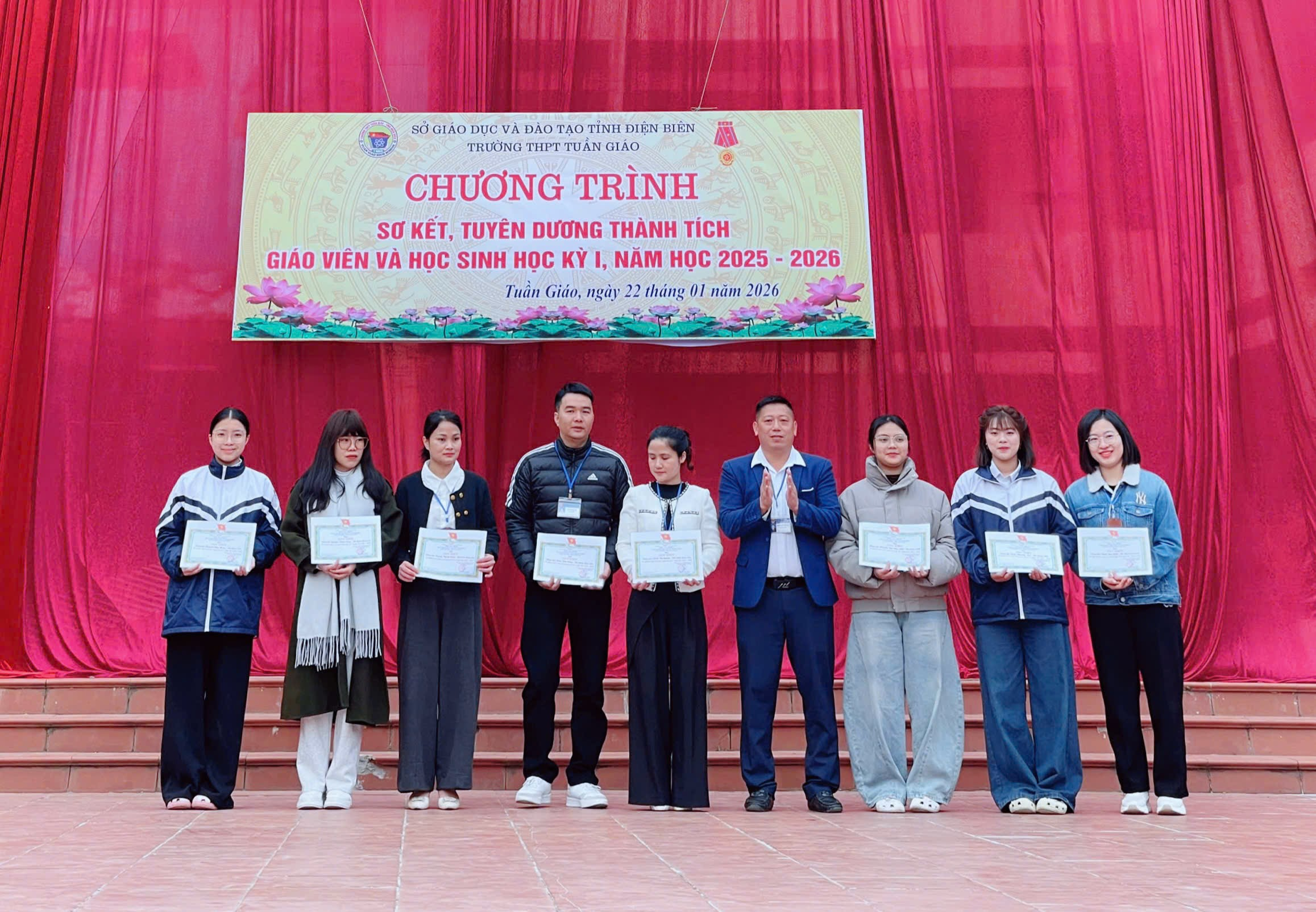 Trong học kỳ I, năm học 2025–2026, Trường THPT Tuần Giáo đã đạt được nhiều kết quả nổi bật. Cụ thể, học sinh nhà trường đã đạt 53 giải trong Kỳ thi chọn học sinh giỏi cấp tỉnh các môn văn hóa lớp 10, 11, 12, trong đó có 02 giải nhì, 22 giải ba và 29 giải khuyến khích; đạt 01 giải ba tại Cuộc thi Khoa học kĩ thuật cấp tỉnh dành cho học sinh trung học. Đồng thời, đạt 06 giải tại Đại hội TDTT Ngành GD&ĐT lần thứ VIII, năm 2025, trong đó 02 giải nhất, 01 giải nhì, 03 giải ba; đạt 25 giải Đại hội TDTT xã Tuần Giáo lần thứ I, năm 2025, trong đó có 16 giải nhất, 04 giải nhì, 05 giải ba. Bên cạnh đó, 27 giáo viên được ghi nhận có thành tích xuất sắc trong công tác giảng dạy, bồi dưỡng học sinh giỏi và các phong trào thi đua của nhà trường.