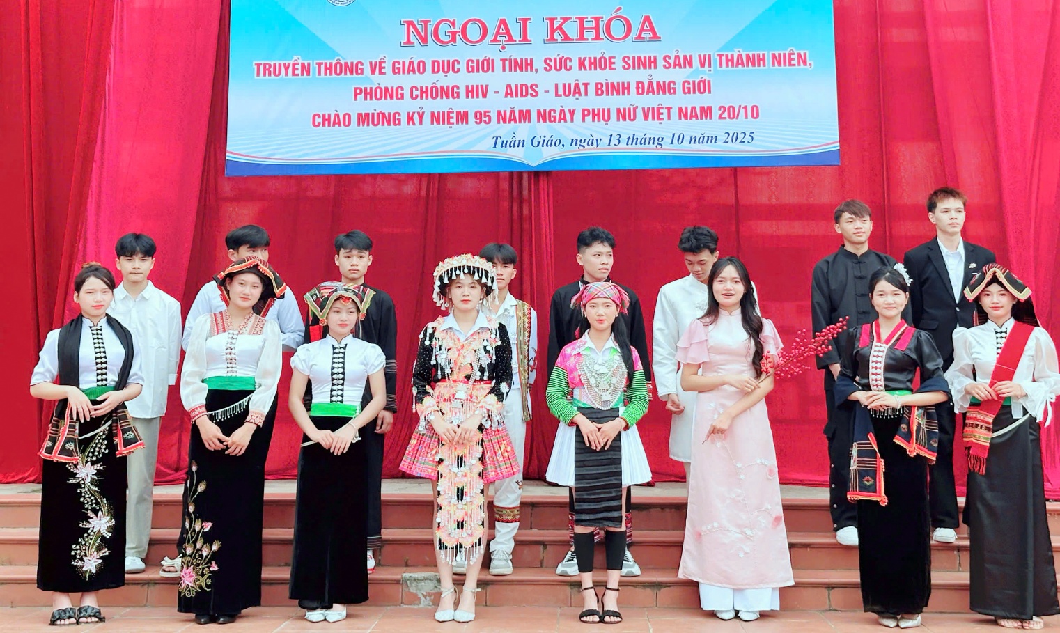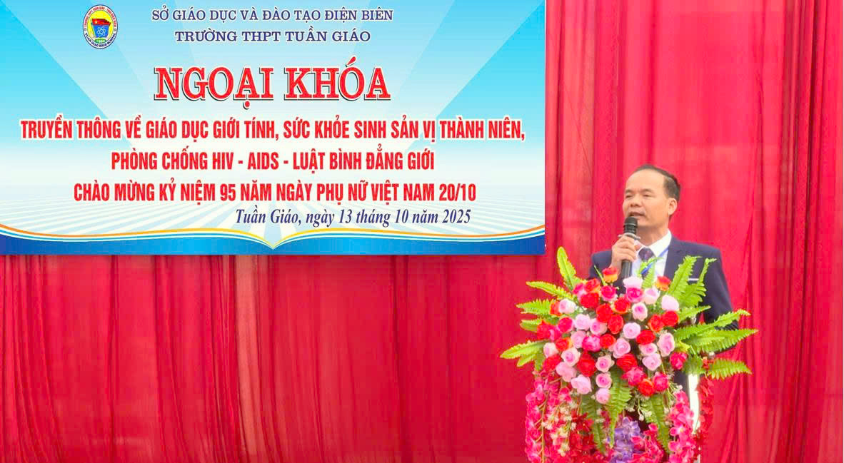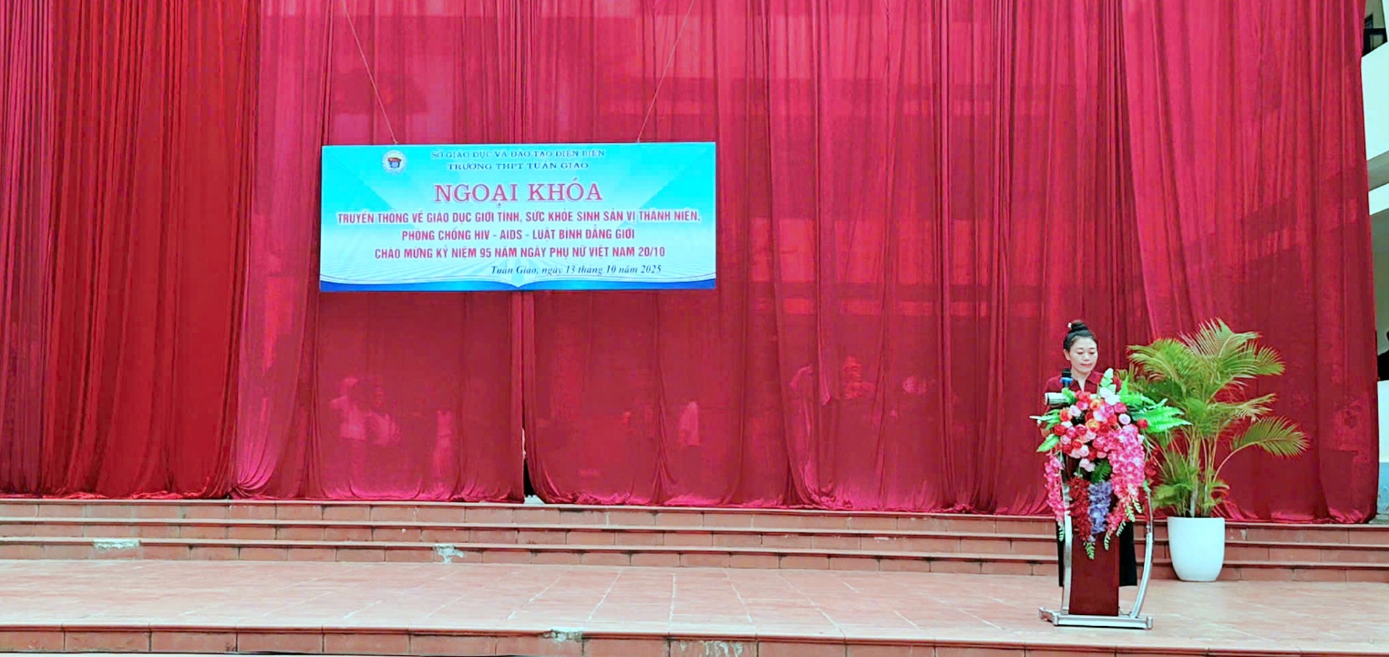 Buổi ngoại khóa với chủ đề: “Truyền thông về giáo dục giới tính, sức khỏe sinh sản vị thành niên, phòng chống HIV/AIDS, Luật bình đẳng giới – Chào mừng kỷ niệm 95 năm Ngày Phụ nữ Việt Nam 20/10” của trường THPT Tuần Giáo đã khép lại trong không khí vui tươi, ấm áp. Chương trình không chỉ mang đến cho các em học sinh những kiến thức bổ ích, thiết thực về giới tính, sức khỏe sinh sản và bình đẳng giới, mà còn góp phần bồi đắp lòng biết ơn, tinh thần tôn trọng phụ nữ, ý thức sống lành mạnh và trách nhiệm với bản thân, gia đình và xã hội; đồng thời thể hiện sự quan tâm sâu sắc của nhà trường trong việc xây dựng một môi trường học đường an toàn, thân thiện, nhân văn – nơi mỗi học sinh được phát triển toàn diện về tri thức, kỹ năng và nhân cách./.