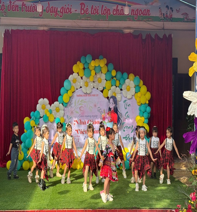 Buổi sinh hoạt chuyên môn diễn ra trong không khí trang trọng nhưng cũng không thiếu phần ấm áp và thân tình, đặc biệt là trong dịp kỷ niệm Ngày Nhà giáo Việt Nam 20/11. Mở đầu chương trình, các đại biểu và giáo viên được thưởng thức một số tiết mục văn nghệ đặc sắc chào mừng các đại biểu tham dự sinh hoạt chuyên môn do các bé Trường Mầm non Pom Lót biểu diễn.