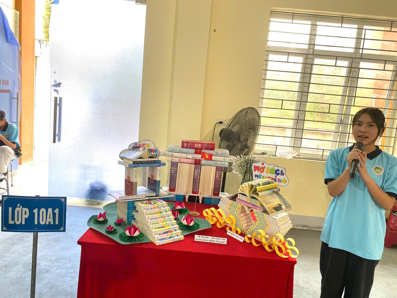 Ngay từ đầu giờ chiều, khuôn viên nhà trường đã trở nên nhộn nhịp với sự chuẩn bị của các lớp. Mỗi chi đoàn mang đến một không gian trưng bày riêng, được sắp xếp gọn gàng, có chủ đề rõ ràng. Có gian tập trung vào sách lịch sử, có gian giới thiệu sách kỹ năng sống, văn học hay khoa học – công nghệ. Nhiều lớp lựa chọn các cuốn sách viết về Bác Hồ, về những tấm gương vượt khó, tạo nên điểm nhấn ý nghĩa trong hội thi.